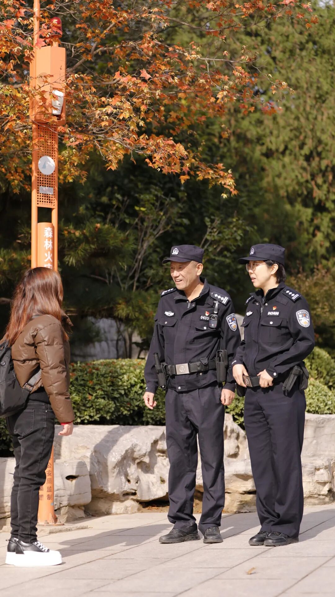 金秋时节,彩叶观赏季拉开帷幕,本周末前往八大处公园、“一片石”等景点打卡的游客络绎不绝。北京市公安局石景山分局启动彩叶观赏期安保工作,加强巡逻疏导,防止发生踩踏事件,及时处置纠纷、走失等警情,并联合消防等部门开展安全隐患排查整治,全方位守护游客出游安全。