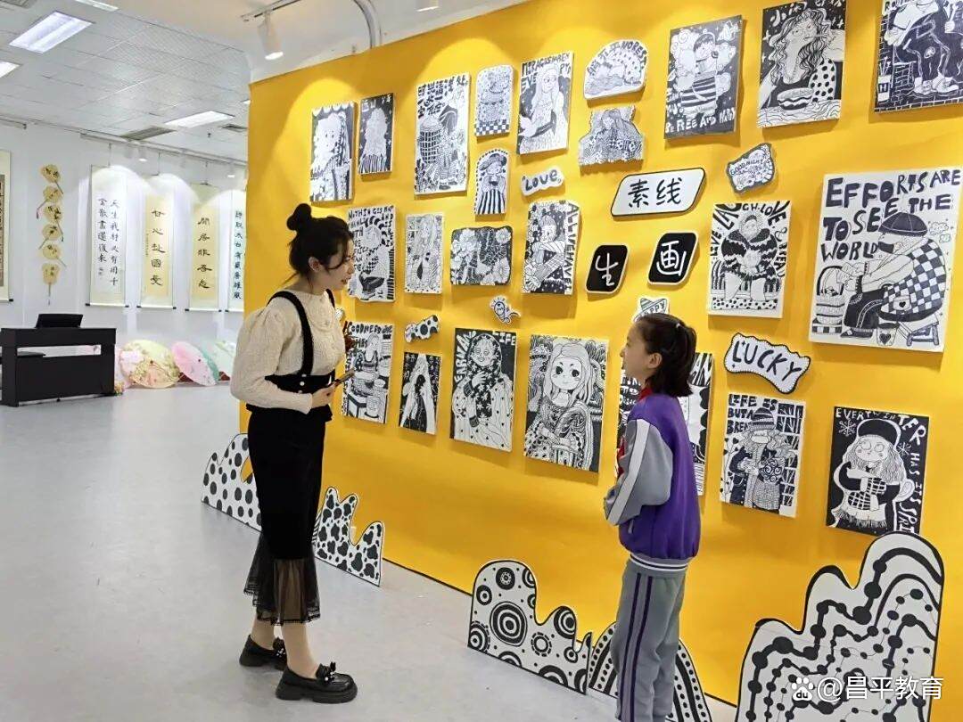 现代艺术展区则充满了时尚与活力。扭扭棒手工作品造型灵动多变,“巩华家燕”“飞鸟乐园”以独特的视角和巧妙的构思将童真创意与手工技艺完美融合;电脑美术作品和多巴胺系列绘画色彩斑斓,博物馆系列线条流畅,呈现出强烈的现代感;线描作品则以简洁的线条勾勒出动感的画面,展现出独特的艺术风格。