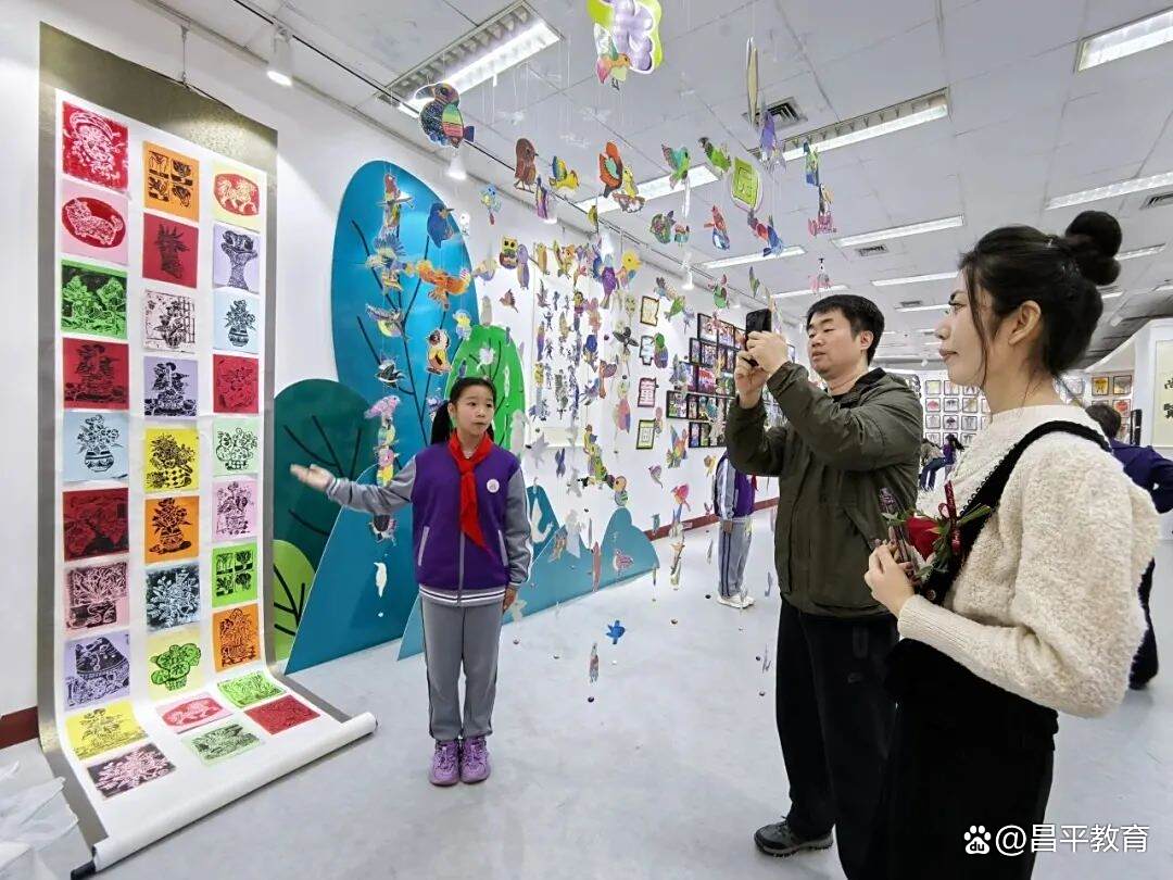 此次展览是巩华学校筑梦美育课程体系一次精彩的实践呈现。数百件作品依不同类别分区陈列,每一件都散发着独特的艺术魅力。书法展区,软笔书法作品笔力雄浑遒劲,硬笔书法作品工整娟秀,尽显汉字结构之美。刻纸、剪纸作品以细腻的线条勾勒出各种形象,传统纹样在其间巧妙分布,神话人物工坊传递着对民俗文化的深情传承;云间、螺钿与版刻拓印等作品更是独具匠心,每一处细节都蕴含着对非遗艺术的尊重与弘扬。