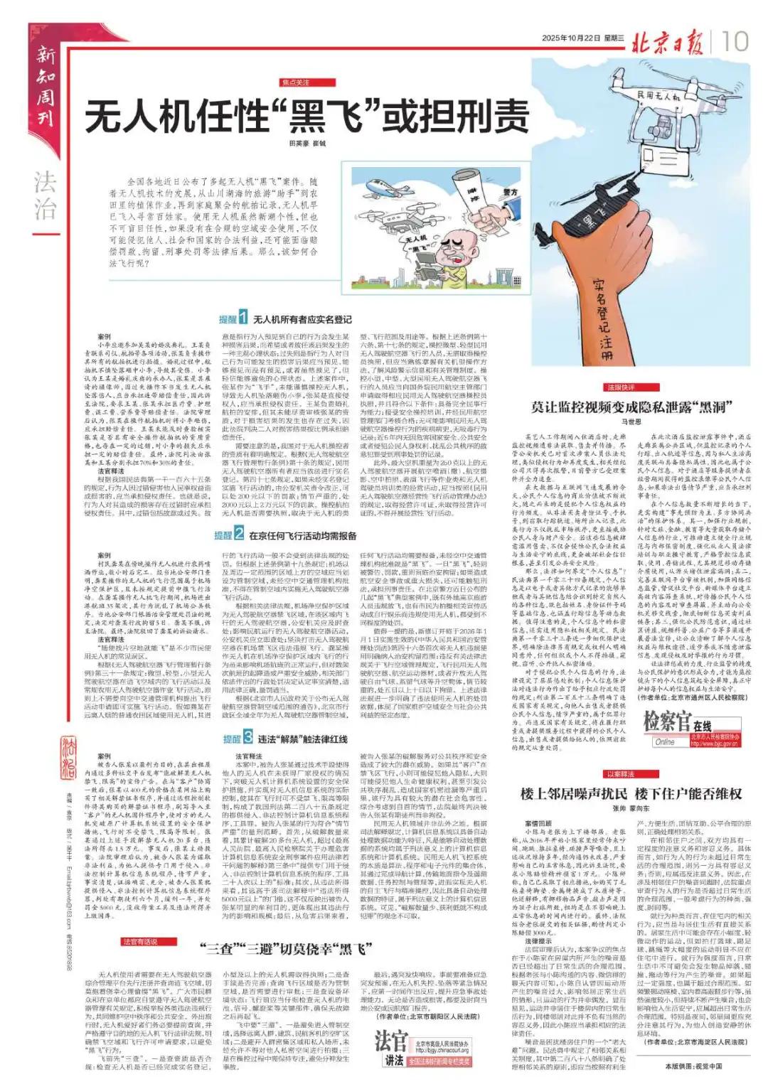 全国各地近日公布了多起无人机“黑飞”案件。随着无人机技术的发展,从山川湖海的旅游“助手”到农田里的植保作业,再到家庭聚会的航拍记录,无人机早已飞入寻常百姓家。使用无人机虽然新潮个性,但也不可盲目任性,如果没有在合规的空域安全使用,不仅可能侵犯他人、社会和国家的合法利益,还可能面临赔偿罚款、拘留、刑事处罚等法律后果。那么,该如何合法飞行呢?