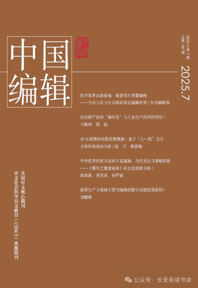 于殿利、周杨在《中国编辑》2025年第7期撰文《论出版产业的“编印发”与工业生产的共性特征》指出,出版的工业或产业属性一直没有被清晰地认识到且没有受到应有的重视,而学术界传统上对于编辑(内容选择)、出版(印刷复制)和发行(推广销售)等从特殊性的角度论述较多,关于其工业经济普遍性的论述几乎为空白。本文试图从工业或产业的角度,阐释出版产业的编印发具有国民经济的一般工业性特征,旨在强调出版首先应该遵循社会经济发展的一般性规律,其次作为文化产业或文化经济,出版具有特殊性,这种文化的特殊性是出版的生命本源性存在,两者是普遍性与特殊性的关系。强调出版的工业或产业属性的共性,目的在于强调出版业是以经济的方式发展文化,出版业要走在商品经济这个文明发展的主航道上,只有这样才能更好地发展文化,才能更好地满足人民群众对精神文化产品日益增长的需求。