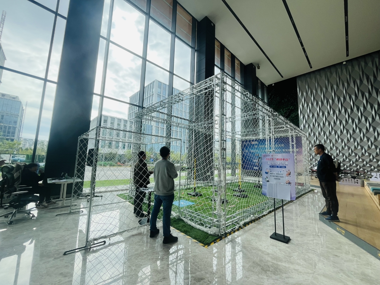 实操环节则创新性地采用模拟飞行与室内飞行相结合的方式将比赛推向高潮。模拟飞行区,选手们通过电脑精准操控虚拟无人机完成指定轨迹;而在更具挑战的室内飞行区,有限空间内多个高难度任务,极大提升了赛事的技术难度与挑战性,对选手的飞行操控精度、复杂环境适应能力及心理素质提出了更高要求。“室内飞行极大考验选手的心理素质和技术稳定性。赛制设计正是为了贴近实际作业中遇到的复杂场景,真正筛选出具备过硬本领的飞手。”大象科技竞赛相关负责人介绍道。