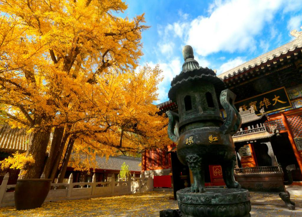 “红螺寺三绝景”——御竹林、雌雄银杏、紫藤寄松点缀在古寺内,翠竹与古松林拥抱着整个寺院,形成了一幅“碧波藏古刹”的优美画卷。