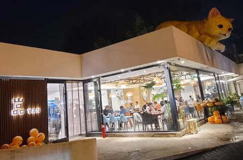 嵓餐厅在红螺寺附近,一下车就被屋顶趴着的巨型大猫吸引,超级吸睛,感觉在热情地欢迎每一位食客。餐厅整体是简约的装修风格,白色为主调,搭配木质桌椅,显得格外温馨。店内宽敞明亮,座位间距合适,用餐很舒适,还有很多绿植点缀,满满的自然气息。