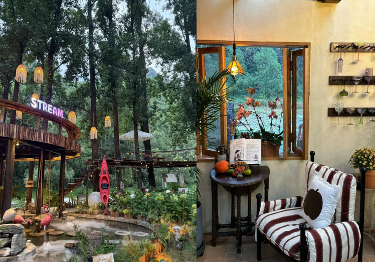 藏匿于青山绿水间,木质场景精心打造,逃离城市喧嚣,潺潺流水相伴,在自然画卷里品咖啡,围炉煮茶,开启治愈之旅。