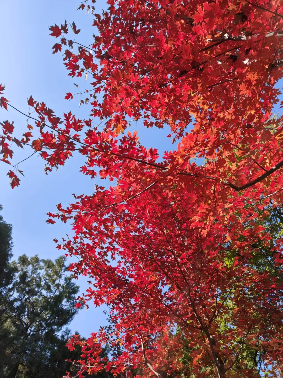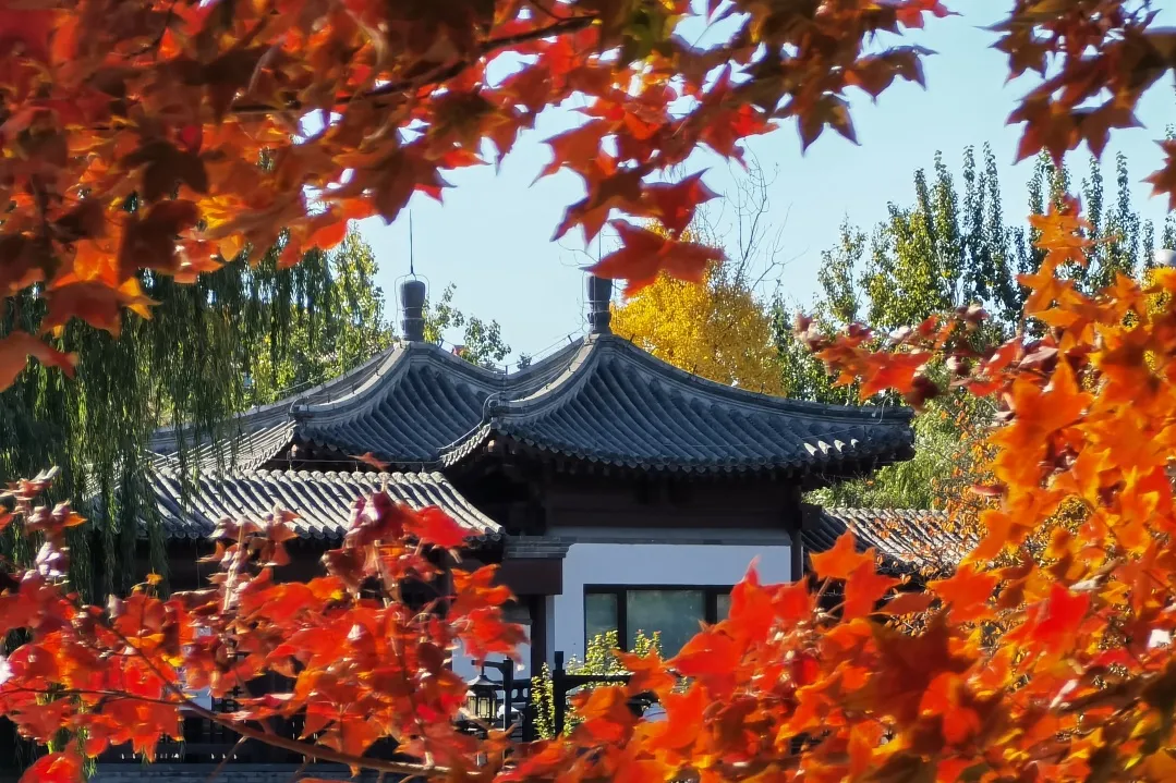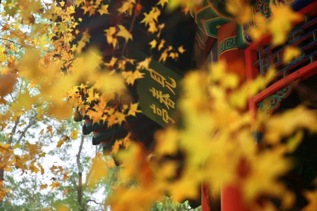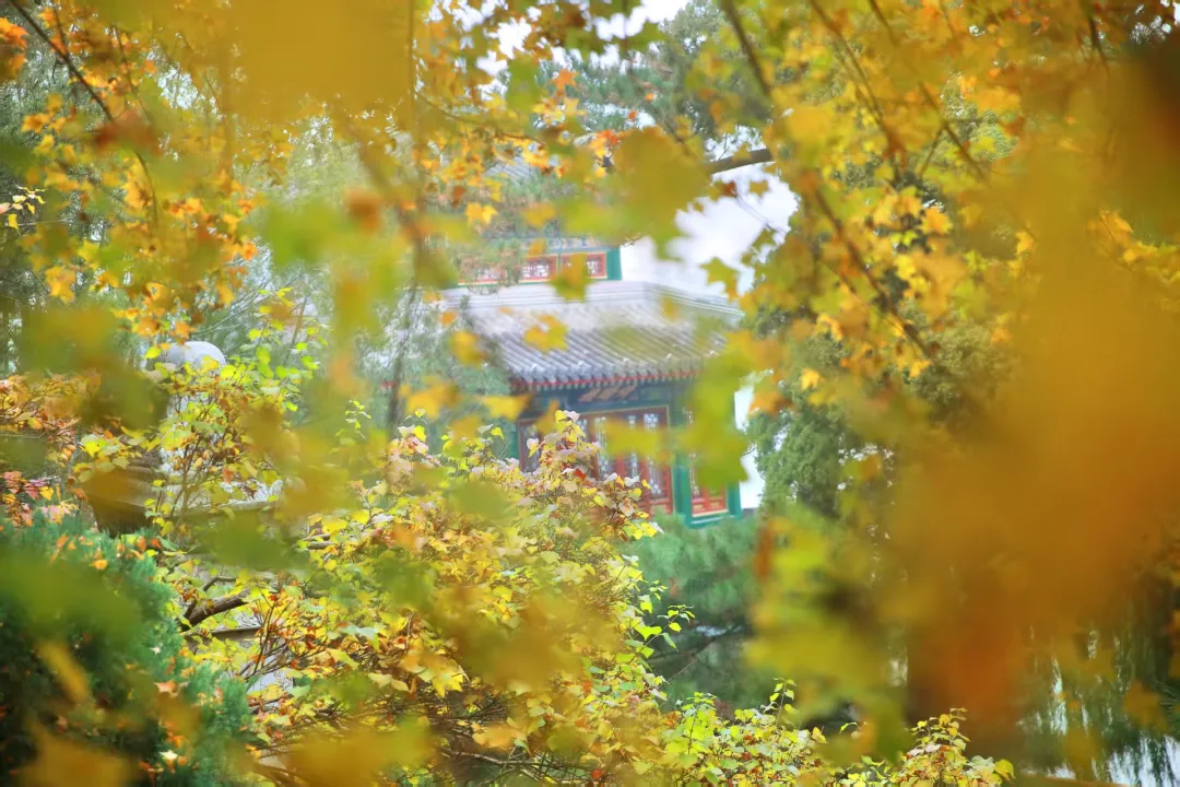 站在南门远眺琼华岛,可见元宝枫的明黄与黄栌的绯红层层晕染,点缀着整个琼华岛。这种观赏体验,让两种彩叶树木共同演绎出皇家园林的秋日华章。