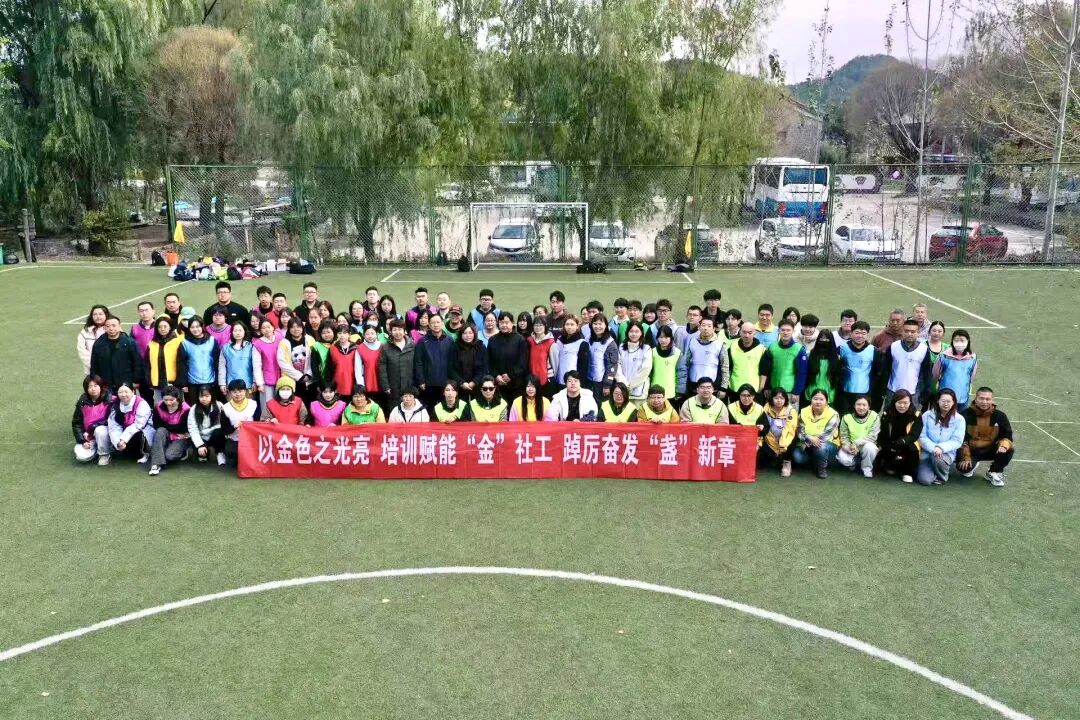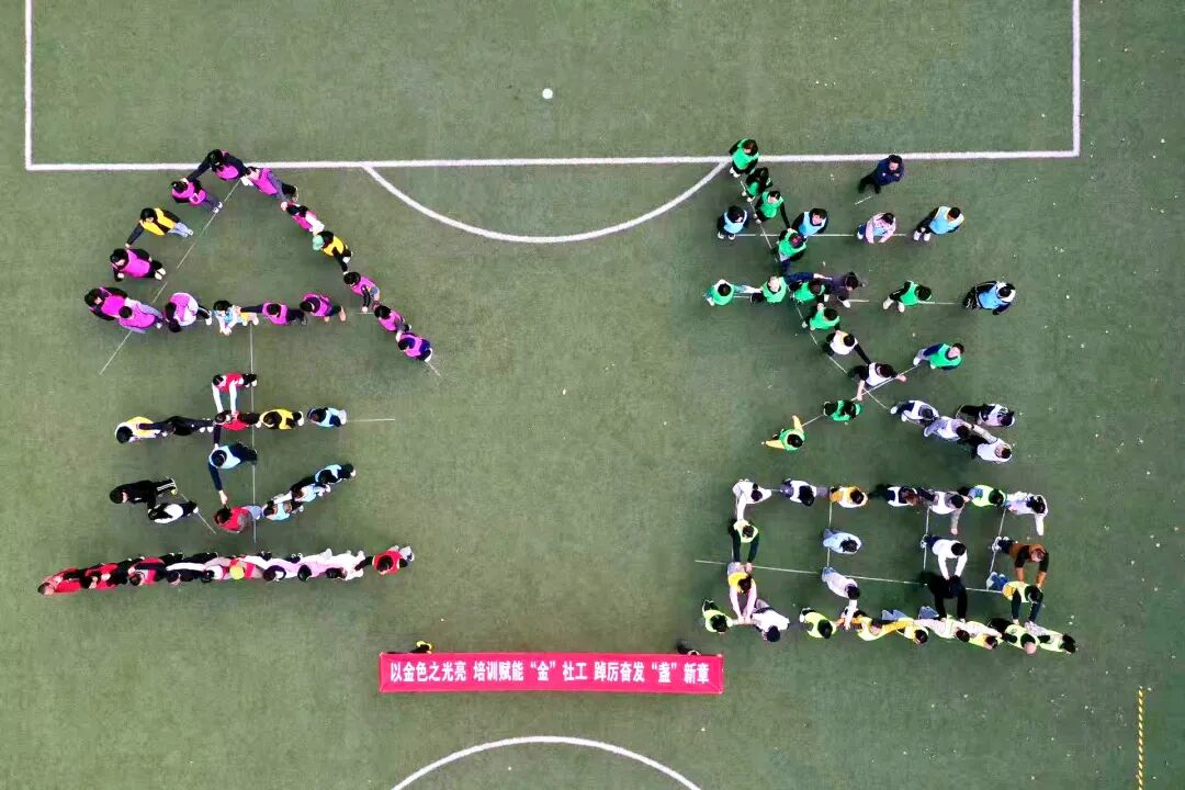 活动尾声,大家共同摆出“金盏”字样的造型,将现场热烈的团队氛围推向高潮,在欢声笑语中进一步增强了社工队伍的凝聚力与归属感。