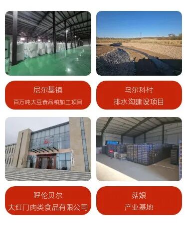 10月15日,一行人员实地调研了尼尔基镇百万吨大豆食品粕加工项目、乌尔科村排水沟建设项目、呼伦贝尔大红门肉类食品加工有限公司及菇娘产业基地等。