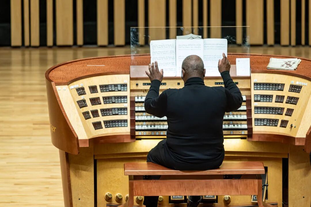 这场音乐会有两首作品是陌生的。英国作曲家安德鲁·阿格尔的《托卡塔与赋格》显然呼应了巴赫的伪作《d小调托卡塔与赋格》(BWV 565)。丹尼尔·菲卡里《第二组曲》中的主题则完成了对德沃夏克《第九交响曲“自新大陆”》第二乐章的致敬。德沃夏克,这位曾极力倡导美国应发展自己民族音乐的作曲家,他的“自新大陆”本身就充满了对黑人灵歌的欣赏与借鉴。菲卡里通过这首作品,仿佛在延续这一跨文化对话的传统。马歇尔敏锐地捕捉到其中的深意,将末乐章的舞蹈风格演绎得淋漓尽致,充满了生命的悸动与身体的智慧。