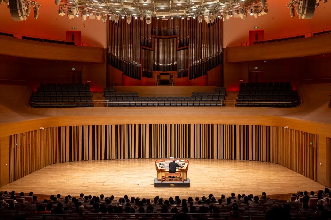 这场音乐会隐伏的一条暗线是法国管风琴作品。法国管风琴传统底蕴深厚,以其独特的交响性闻名于世。这一传统在19世纪随着卡瓦耶-科尔制作的革新性管风琴而蓬勃发展,这些乐器音色丰富、音量宏大,能够模拟整个交响乐团的效果。维多尔等作曲家据此创立了“管风琴交响曲”这一体裁,将宏伟的架构、绚丽的音色与复调技巧融为一体。其后,弗朗克、圣-桑等作曲家进一步丰富了这一传统,使其成为法国音乐遗产中一座辉煌的殿堂。圣-桑的《第三幻想曲》将我们带入法国管风琴传统的美学世界。马歇尔的分句极其清晰,这些停顿经常像是某种发散的思绪停了下来,增强了这部作品的幻想性。中场休息后,维多尔的《g小调第六交响曲》展现了管风琴作为“一人交响乐队”的宏伟气势。这首五个乐章的作品考验着演奏者的体力和智慧,马歇尔在快板乐章展现出清晰的运音技巧,而在其他乐章更引人注目的是他的交响曲思维的处理,末乐章那些圣咏般的神圣时刻,他利用北京艺术中心更为分散的音栓位置做出了音色对置的远近空间感,第一乐章那些瓦格纳风格的半音挤压也被演奏得极富张力。