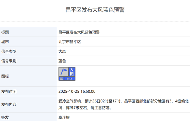 昨日,海淀区、昌平区、门头沟区、房山区气象台陆续发布大风蓝色预警信号,请市民朋友注意防范。