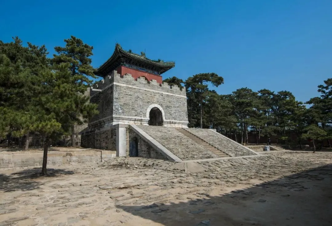 方城位于园寝门之北,其建筑形式大体与帝后陵相同,只是规模稍逊一筹。这组建筑由方城、明楼、宝城、月台、礓䃰组成,全部为砖石结构。