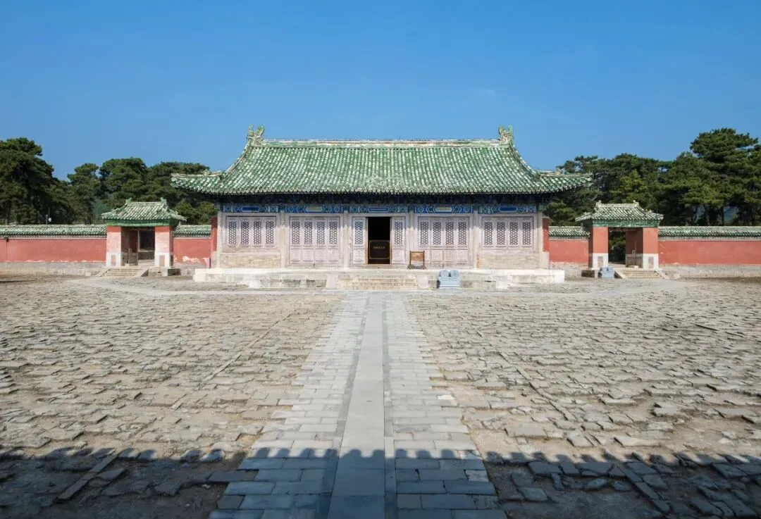 扩建的另外一组建筑,就是在宫门与享殿之间的东西两侧,添建了东西配殿。配殿的建筑形式为单檐歇山顶,面阔5间,有前廊,屋顶覆绿琉璃瓦。
