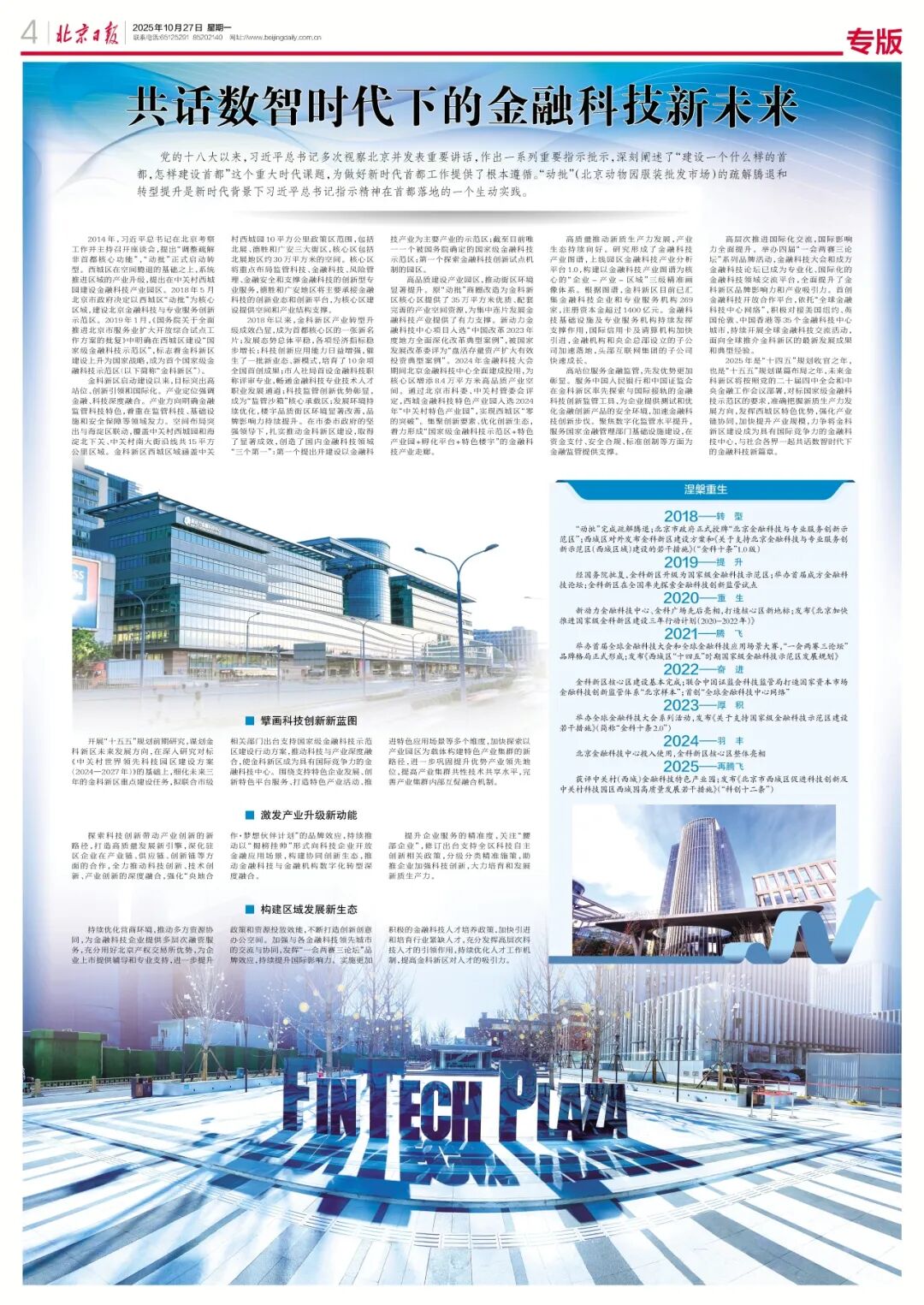金科新区核心区建设基本完成;联合中国证监会科技监管局打造国家资本市场金融科技创新监管体系“北京样本”;首创“全球金融科技中心网络”