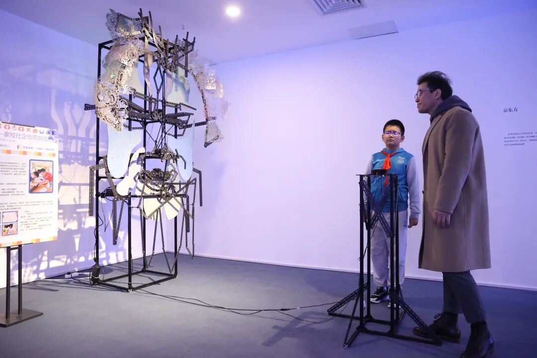 开幕式结束后,在卢征远教授的带领下,与会嘉宾共同参观展览,现场呈现的一项项展陈令人耳目一新。本届展览延续“艺术融合硬核科技”的特色,将产业成果转化为可触摸、可互动的文化场景。展览分为“共生·之境”“智联·万象”“古韵·新章”“创想·无界”四个章节,将艺术装置与亦庄的生态产业理念深度融合,让传统文脉与亦庄的现代产业精神碰撞共鸣,全面呈现经开区作为北京高精尖产业主阵地的创新实力。