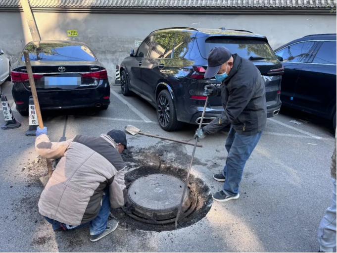 10月20日清晨,施工队准时进场,拆旧井盖、清碎石、拌水泥、装新盖、找平路面……每一道工序都严格按照“项目池”备案标准推进。社区工作人员全程驻守现场,既当“施工监督员”,确保新井盖与路面严丝合缝;又做“居民服务员”,搀扶老人绕行、解答居民疑问。从晨光微亮到夕阳西下,仅用一天时间,破损路面彻底焕新,“项目池”中的修缮项目圆满落地。