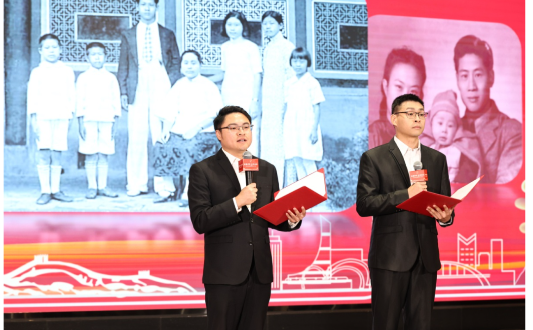 林彦辰、林冠廷在“共铸中华,光阴为证”纪念台湾光复80周年主题分享会上朗诵家书