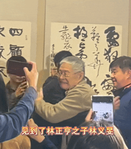 林正亨之子、83岁的林义旻与两位年轻人紧紧相拥