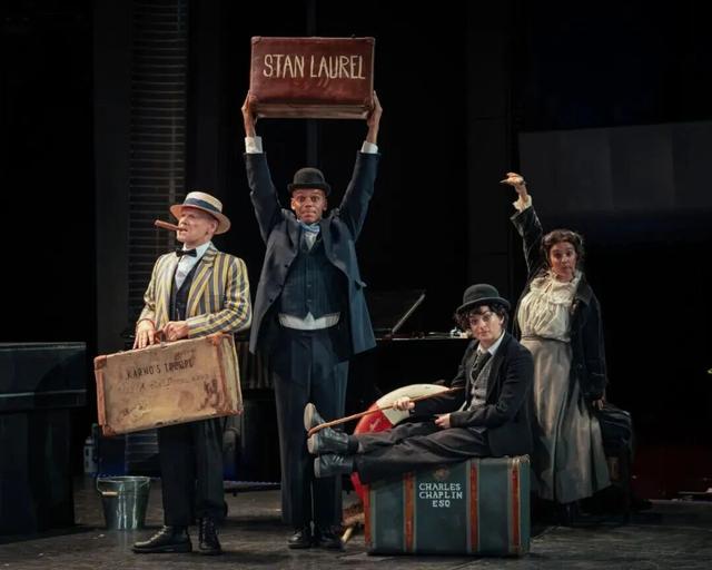 四位演员皆拥有各具特色的肢体喜剧和默剧技巧,并未刻意复刻卓别林经典的“流浪汉”形象。然而,高度的肢体掌控力让他们在不知不觉间,一举手、一投足的细节都在提醒观众:远去的大师在这个舞台上恍若亲临。卓别林的独特气质能让人一眼认出,其他角色也具有说服力。虽然没人说得准历史上的他们究竟是什么模样,但在这个舞台上,所有艺术处理都显得顺理成章、恰如其分。