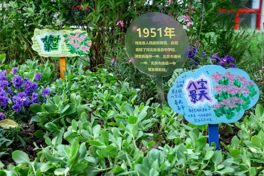 潞河中学高一、高二的32个班级不仅参与了微花园的设计与建设,还认养了校园中的植物角。
