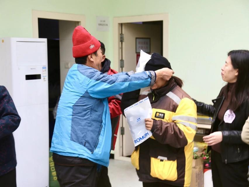 新就业群体为老街坊们送上了温暖帽子,老街坊也为“新友邻”回赠心意礼物,大家带上小红帽,开心地拍下了“新友邻、老街坊全家福”。