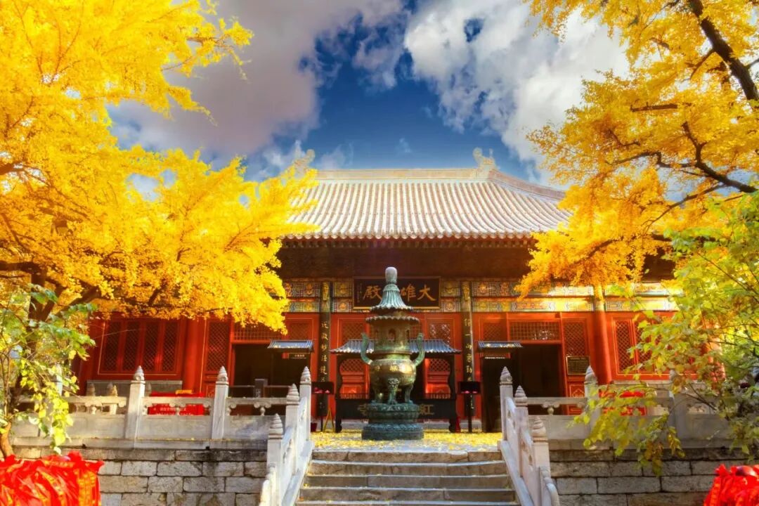 秋日的千年雌雄银杏树满树金黄,落叶铺就“黄金大道”,与苍翠的御竹林形成鲜明撞色。古刹在蓝天白云与彩叶映衬下更显静谧,骑行至此可停留1-1.5小时,听风吹树叶沙沙响,闻空气中的淡淡禅意与桂花香,既能感受佛教文化的厚重,又能沉浸式体验秋日山林的诗意。摩托车可停在景区专用停车场,方便且安全。