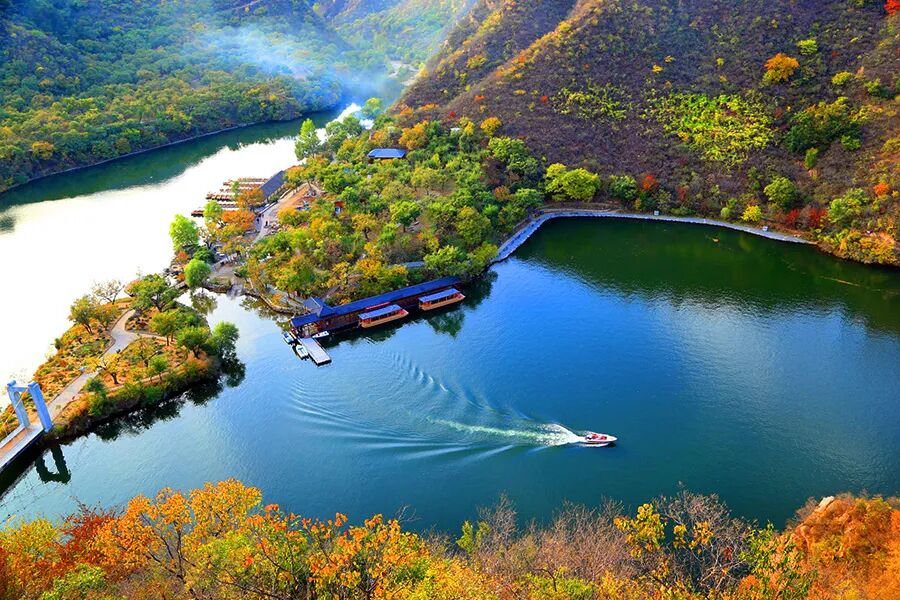 三段入水的长城在五彩山林与碧水的环绕下,更显沧桑与灵动。岸边的古栗树叶子变成金黄色,部分树木还挂着饱满的栗子,山间的黄栌、火炬树红得似火。可乘船游览湖面,看彩叶倒映在水中,或是徒步登长城,穿梭在秋日山林间,近距离感受“长城绕湖畔,巨龙探水湾”的秋日奇观。