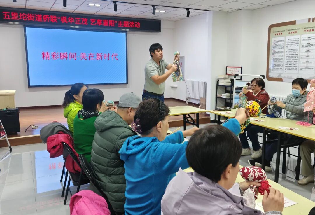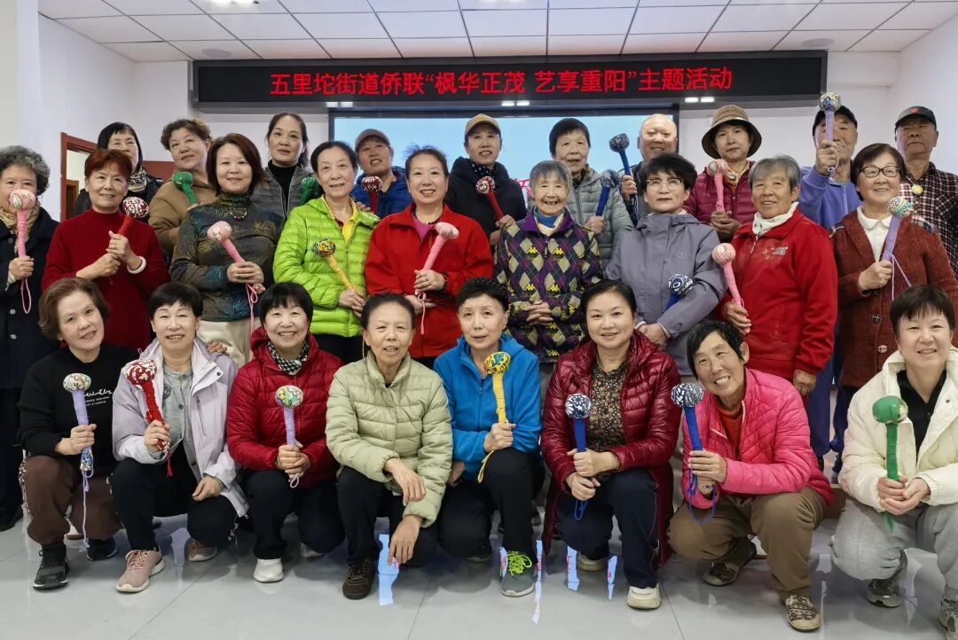 岁岁重阳,今又重阳。为传承中华民族敬老、爱老、助老的传统美德,进一步丰富归侨侨眷生活,凝聚侨心侨力,10月27日,五里坨街道侨联开展“枫华正茂 艺享重阳”主题活动。本次活动特邀北京市侨联华侨服务中心刘伟老师带领大家制作养生锤,同时开展主题摄影展与侨法宣传活动。三场活动同频共振,为辖区归侨侨眷带来了一场集文化、情感与权益保护于一体的服务盛宴,吸引了30余人参与。