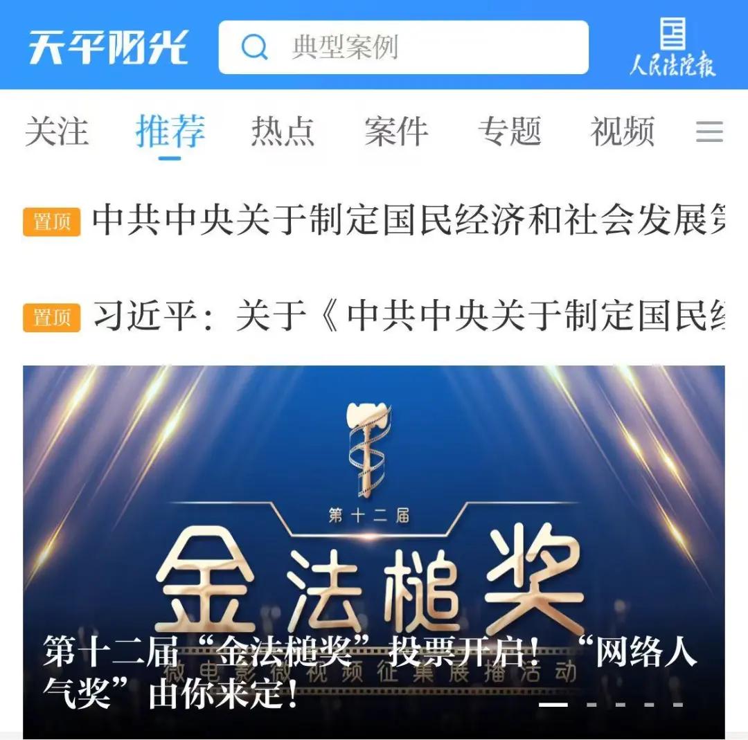 1.下载“天平阳光”APP,通过首页点击进入第十二届“金法槌奖”微电影微视频征集展播活动投票页面。
