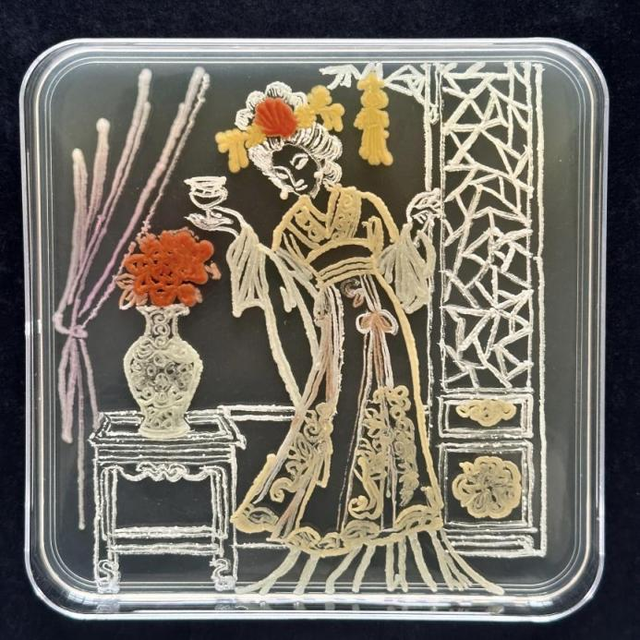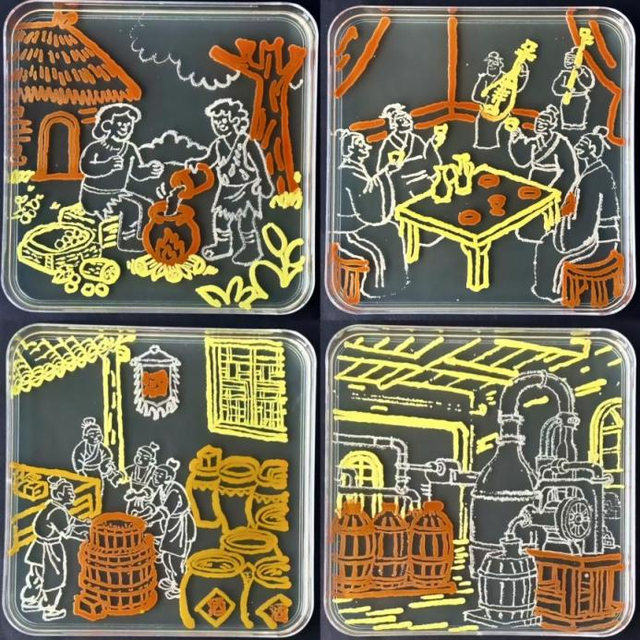 作品创意:用微生物复刻经典,让酒意藏于菌落间,再现古雅醉态与酒文化韵味 。