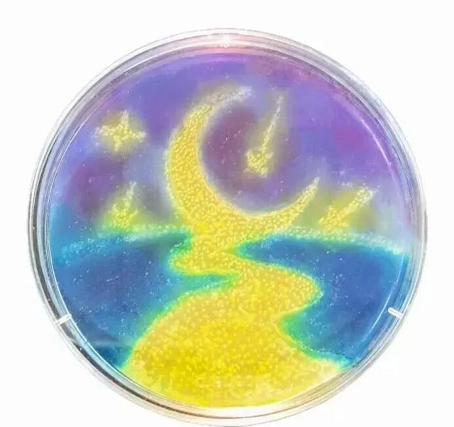 参赛者以培养皿为画布,以接种工具为画笔,以不同微生物为颜料,在方寸之间描绘出科技创新、绿色生态、智能制造等生动精妙的图画,展现出科学与艺术的融合之美!