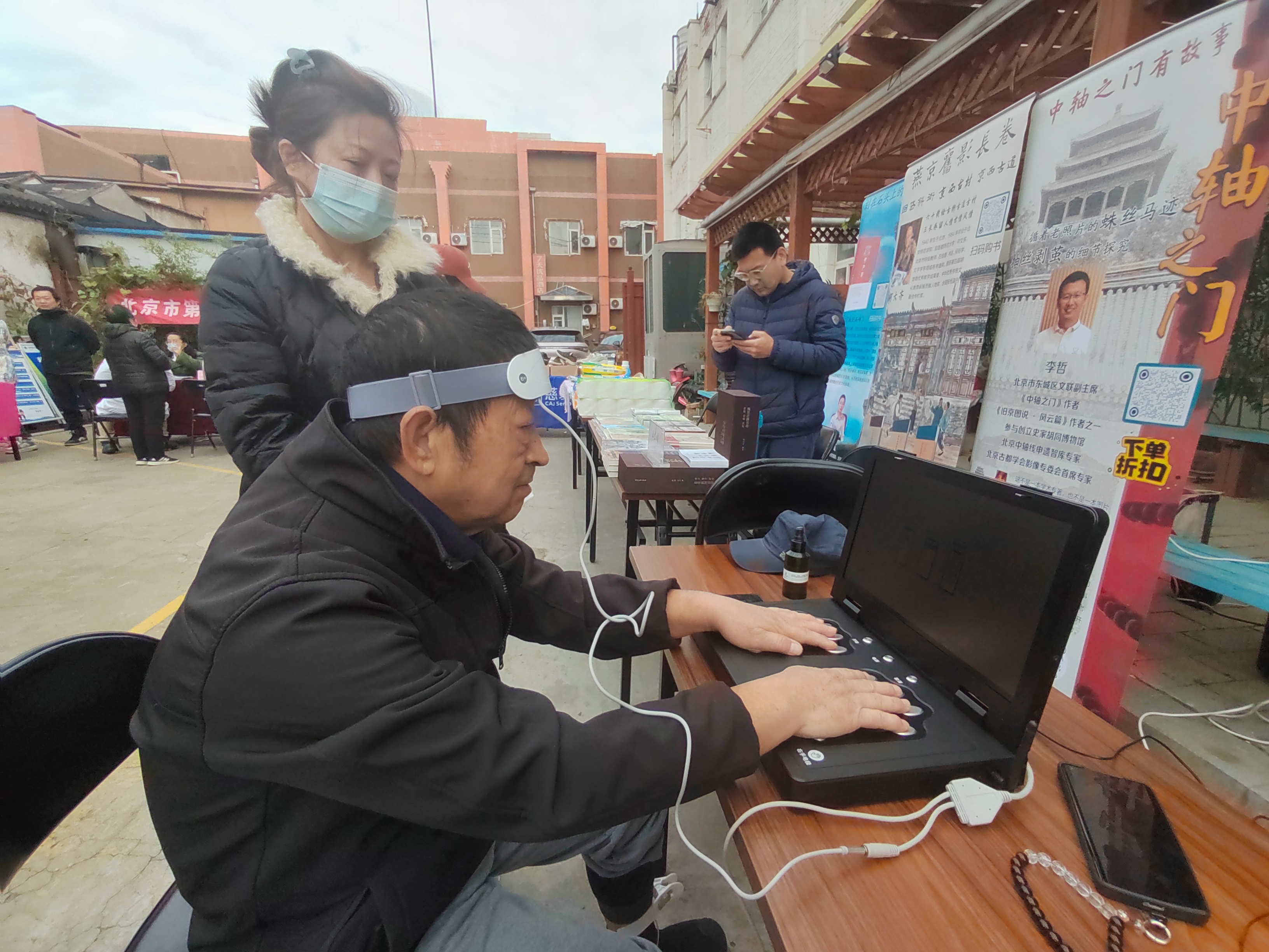 游园会现场,最聚人气的当属“仁心士”义诊区和“睿智士”智慧养老产品体验区。