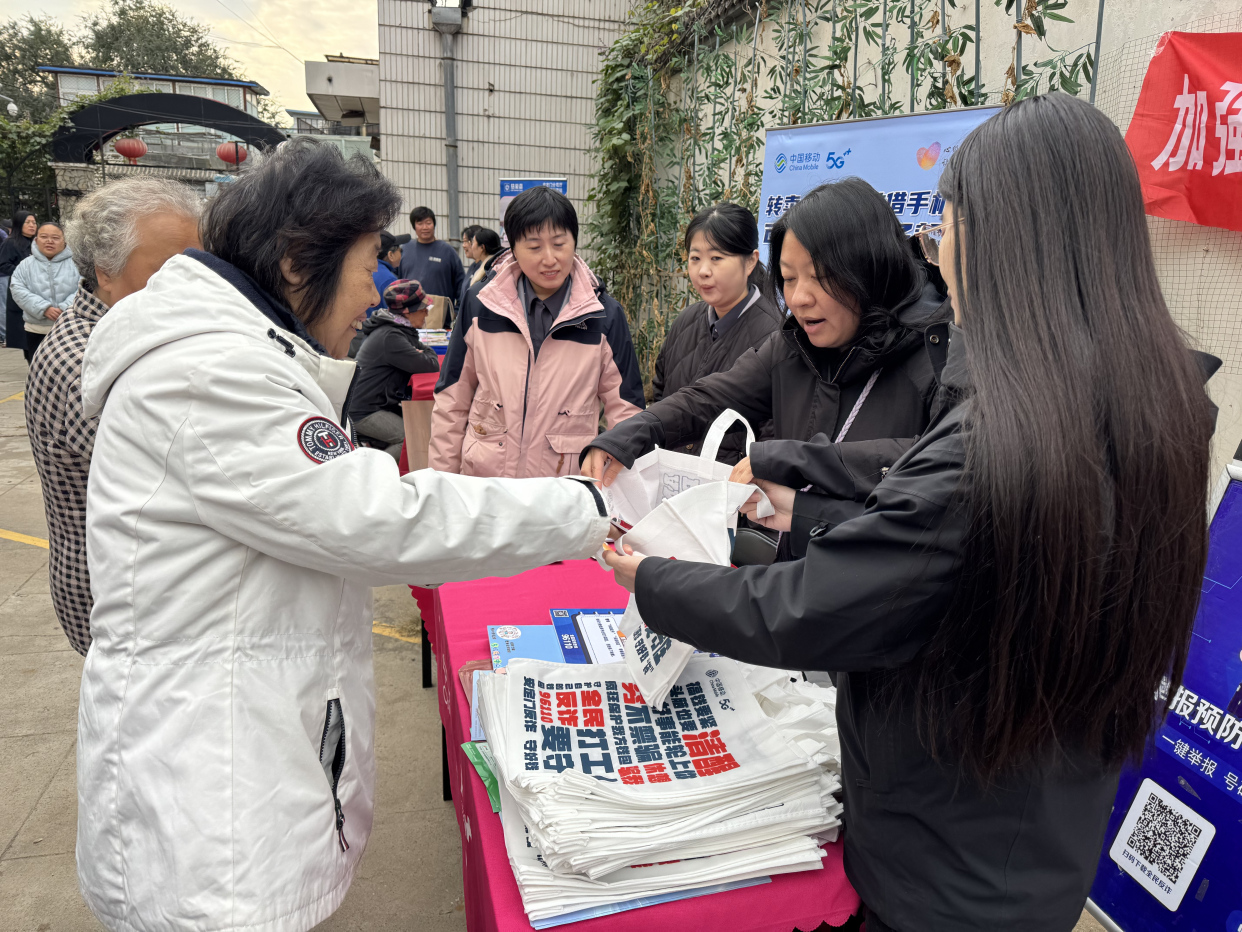 本次活动同样将长者的财产安全与法律权益保障作为重点。“守金士”反诈宣传专区内,街道平安建设办公室邀请招商银行、中国移动等单位的金融、通讯专家正通过剖析真实案例、分发宣传折页和趣味问答等形式,向老人们深入浅出地讲解当前高发的电信网络诈骗手法与防范技巧,筑牢“反诈防火墙”。