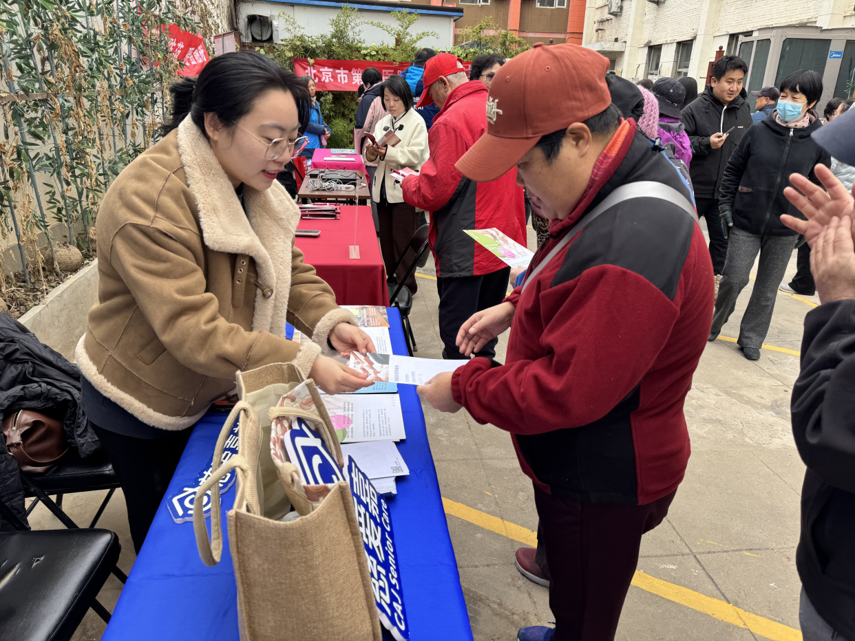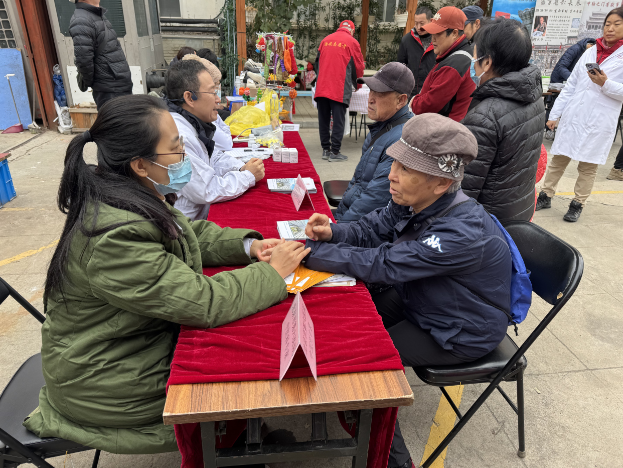 在“仁心士”义诊区,来自北京市第六医院的医护人员们耐心细致地为长者们测量血压、检测血糖,并针对每位老人的具体情况提供一对一的健康咨询。