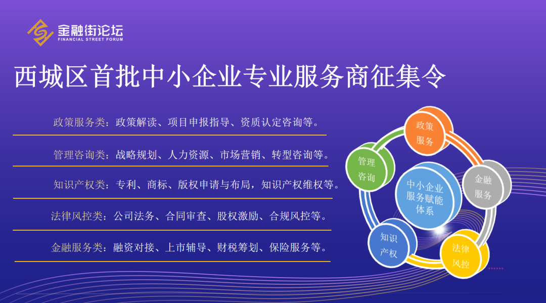 中小企业是区域经济高质量发展的重要基石。为贯彻落实国家和北京市关于促进中小企业发展的决策部署,西城区围绕政策服务、管理咨询、知识产权、金融服务、法律风控等五大领域,面向社会公开征集专业服务商,推动服务资源精准对接、服务能力深度融合,切实帮助企业破解“成长的烦恼”。