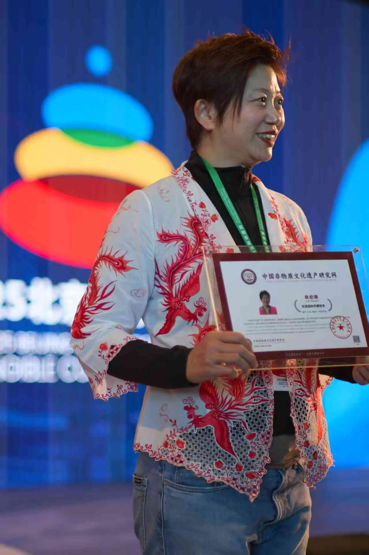 在2025北京国际非遗周期间,林幼琳荣获中国非物质文化遗产研究网颁发的 “非遗国际传播使者” 称号,并被特聘为非遗研究员。这份荣誉让她更清晰自身定位,要带着祖辈的技艺,在更多文化土壤上播种融合的种子。