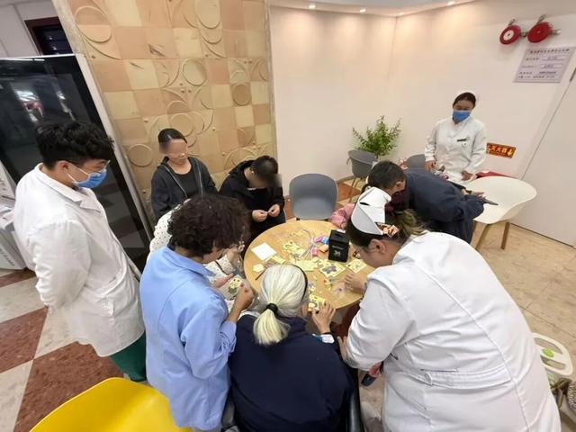 每周四下午4时,阳光洒进B区一层活动中心,浅蓝桌布的长桌上,五彩细沙如星光般装在透明盒里,光滑的小木板旁摆着丙烯颜料,一场“指尖康复课”即将开启。参与患者中,有右腿打石膏的骨折孩童,有脑梗后右手微颤的阿姨,还有右腿戴支具的大叔,运动功能重建的护士们已笑意盈盈等候,用手工温度点亮康复路。