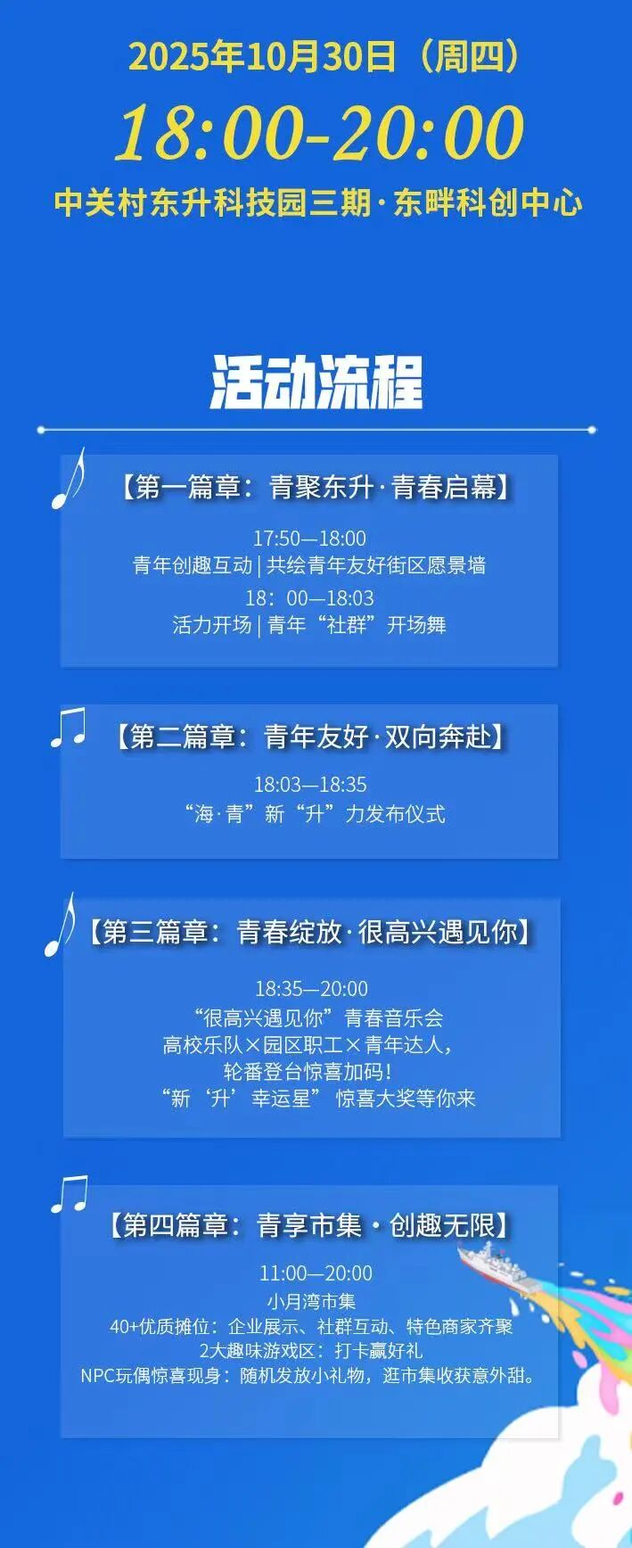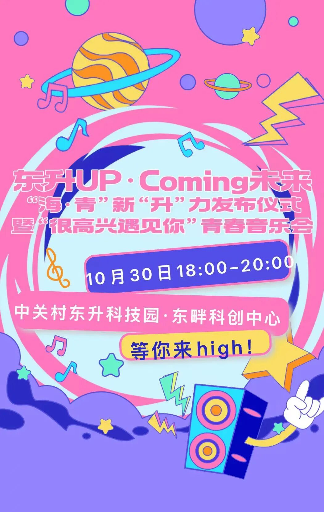 为深入贯彻落实海淀区青年友好型城市建设部署,推动“街区、校区、园区、社区”青年群体融合发展,东升镇将举办UP·Coming未来“海·青”新“升”力发布仪式暨“很高兴遇见你”青春音乐会。这是一场属于所有青年的开放日,不止是音乐会,更是青年交流的盛宴!