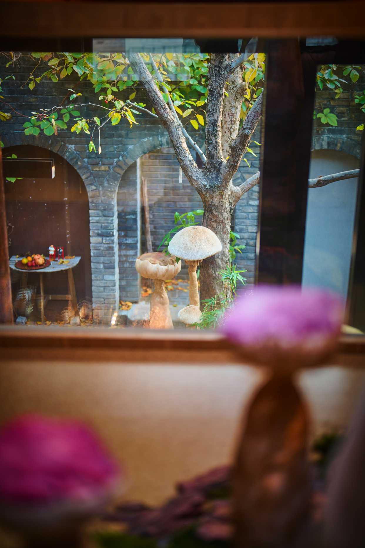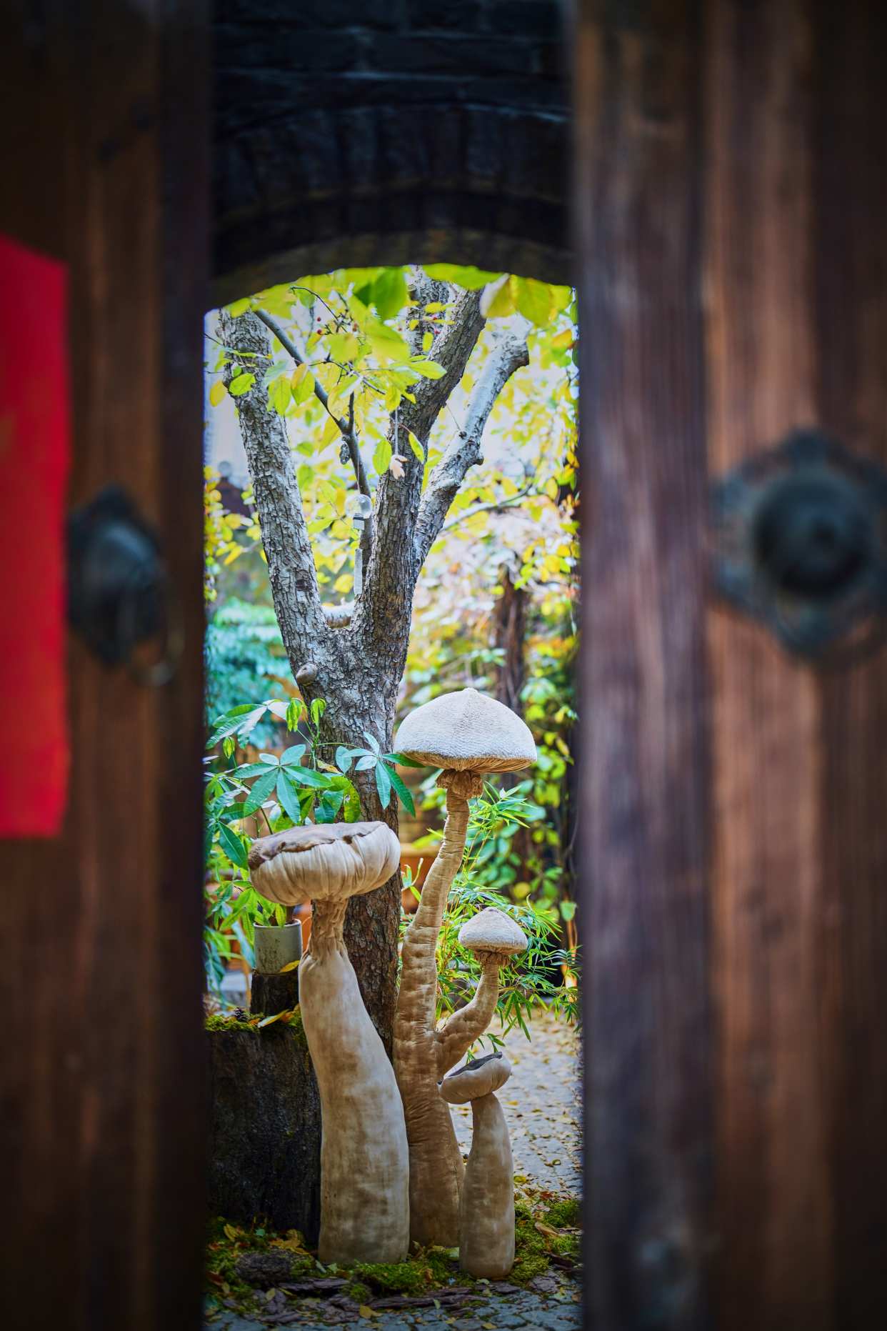 还有灵动的蘑菇娃娃,悄悄藏在小院的角角落落,与你一同欣赏这满院秋色。