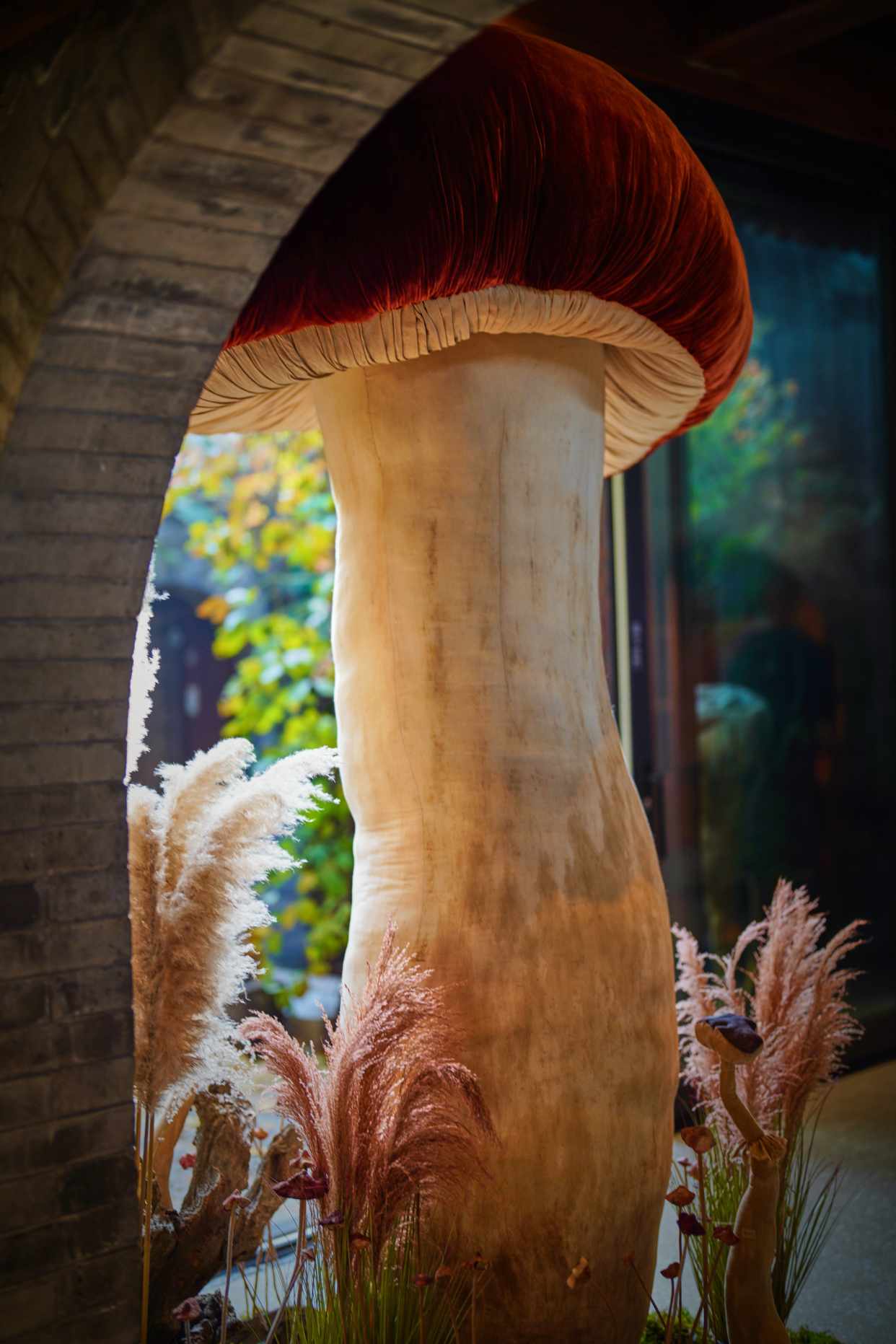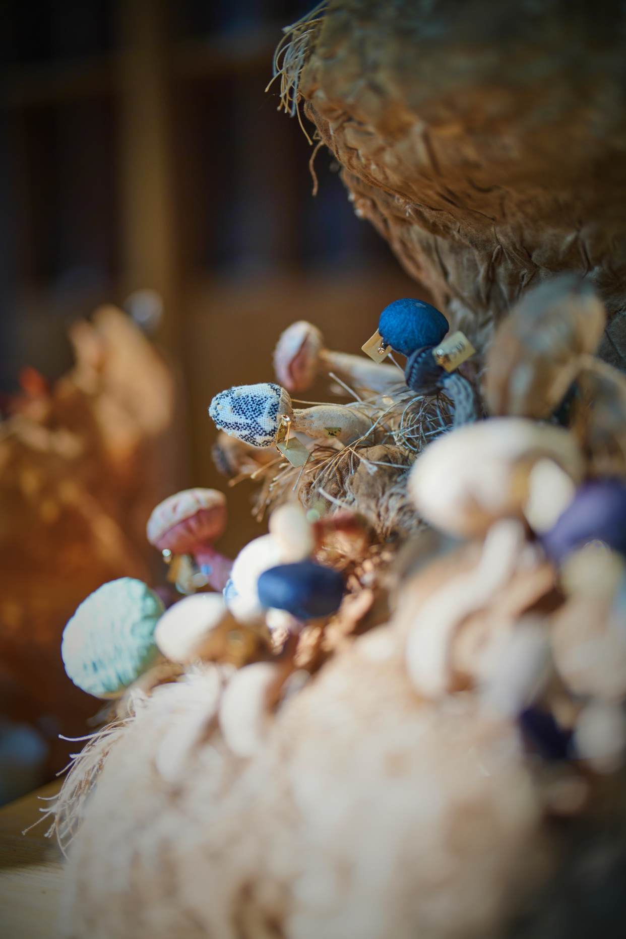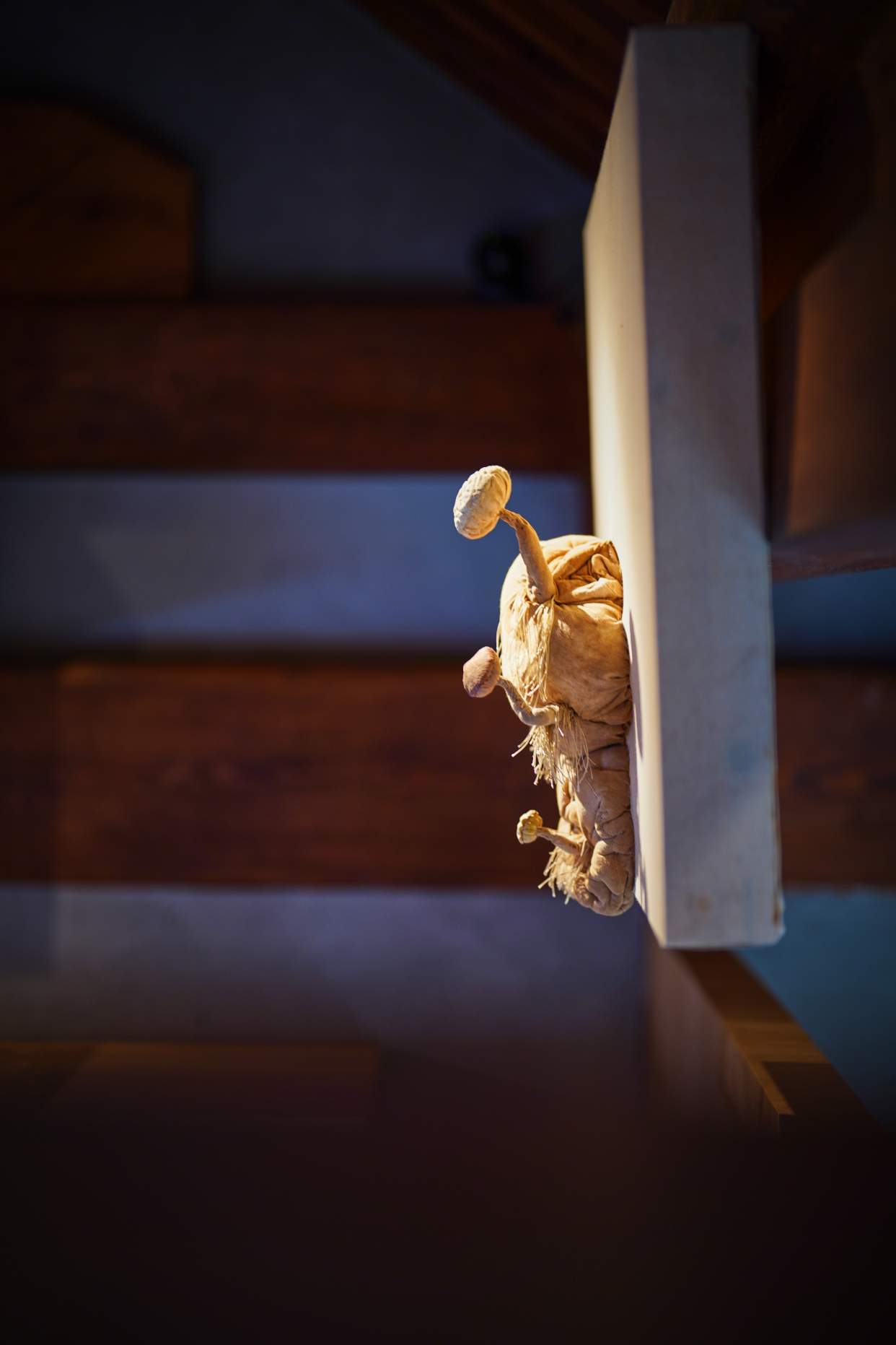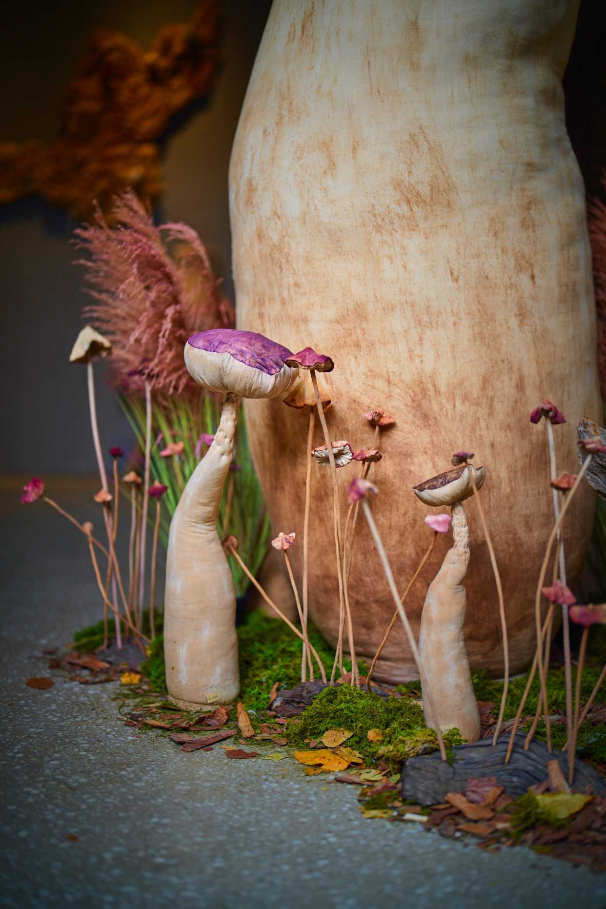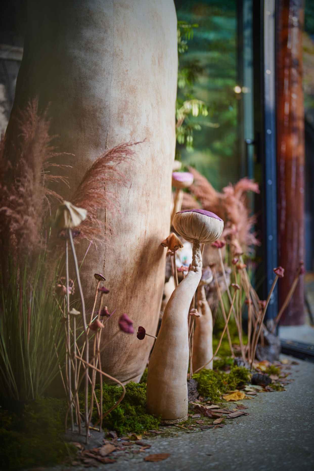 这里有两米多高的巨型菌菇,也有手指大小的几株被嵌入画框,像会呼吸的标本画。