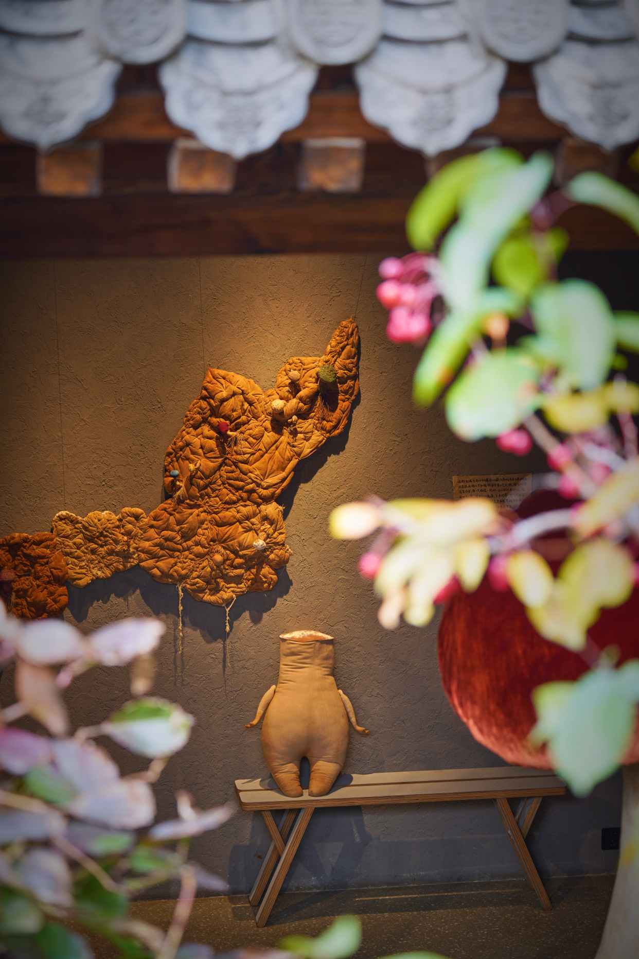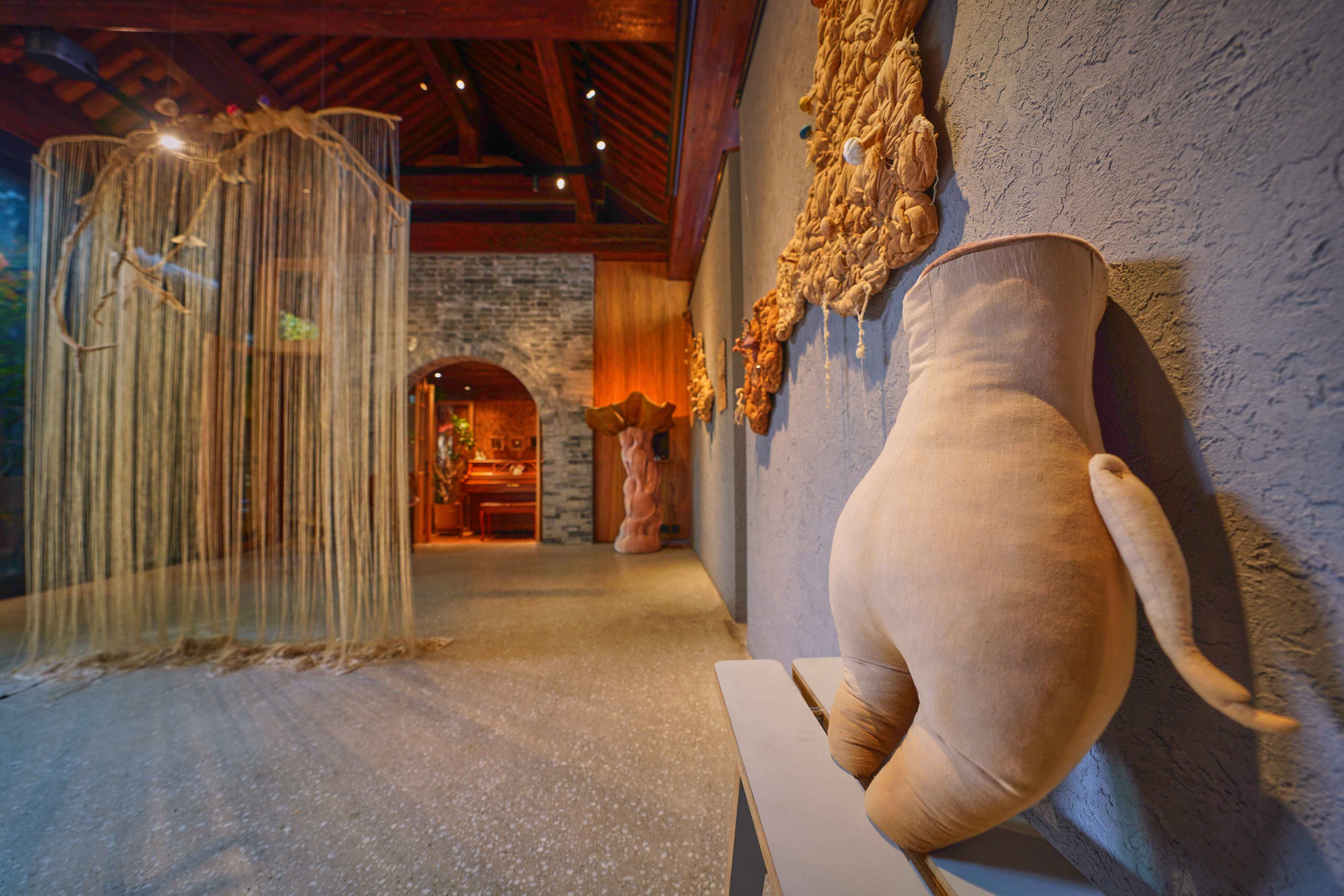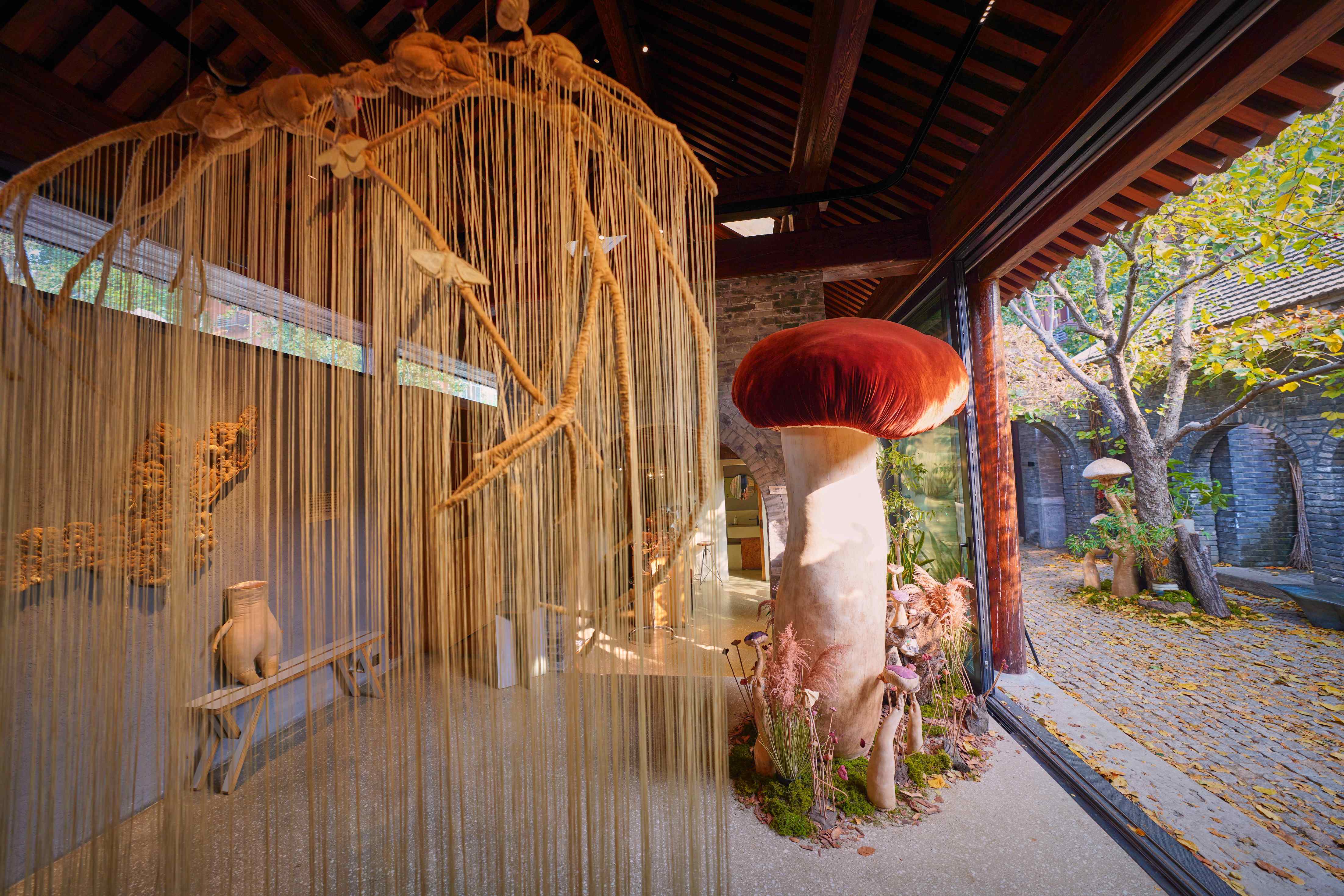 推开院门,便与一丛“蘑菇”不期而遇——这里正是艺术家吴文芳的“与共”个展,将老四合院化作自然与艺术对话的秘境。