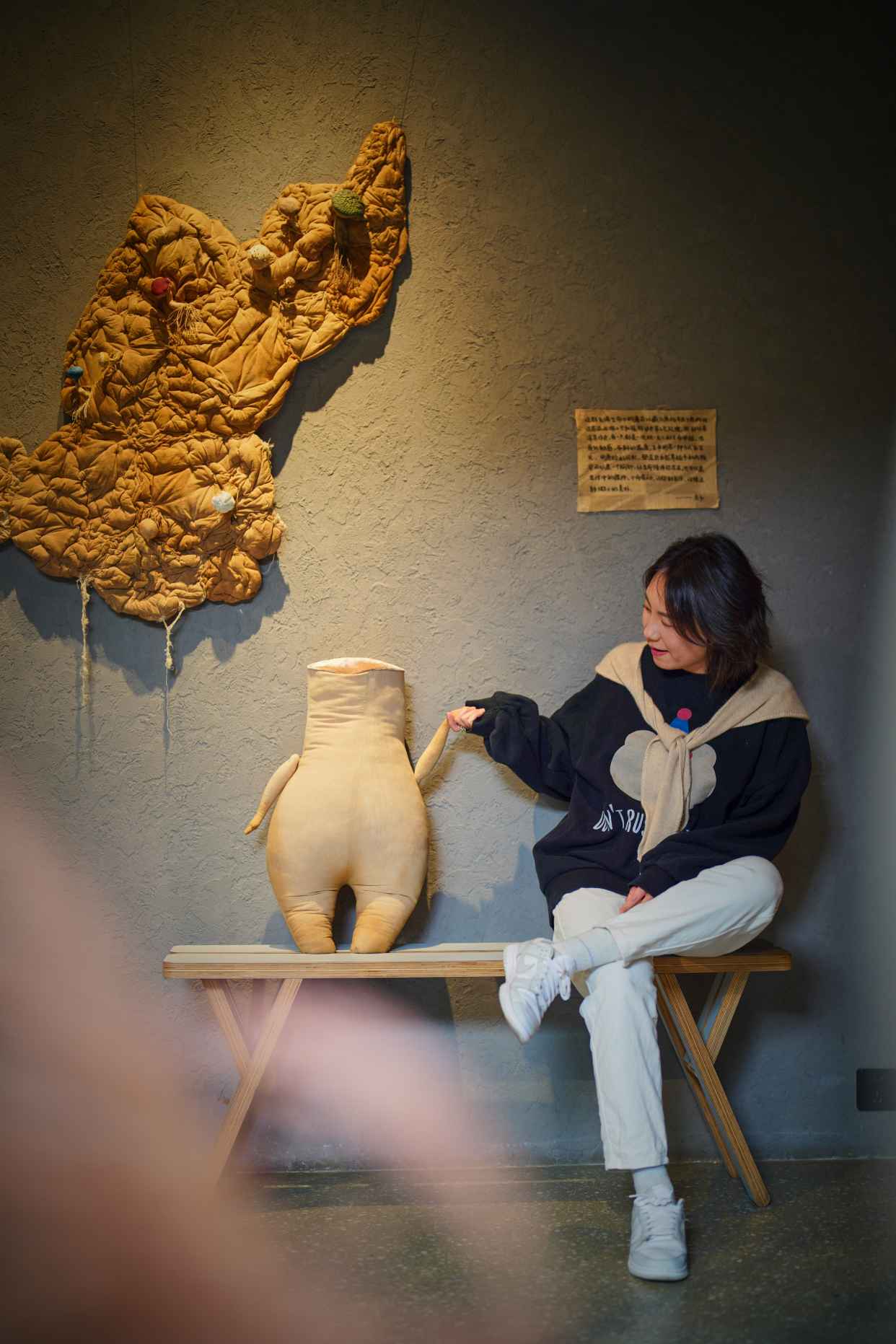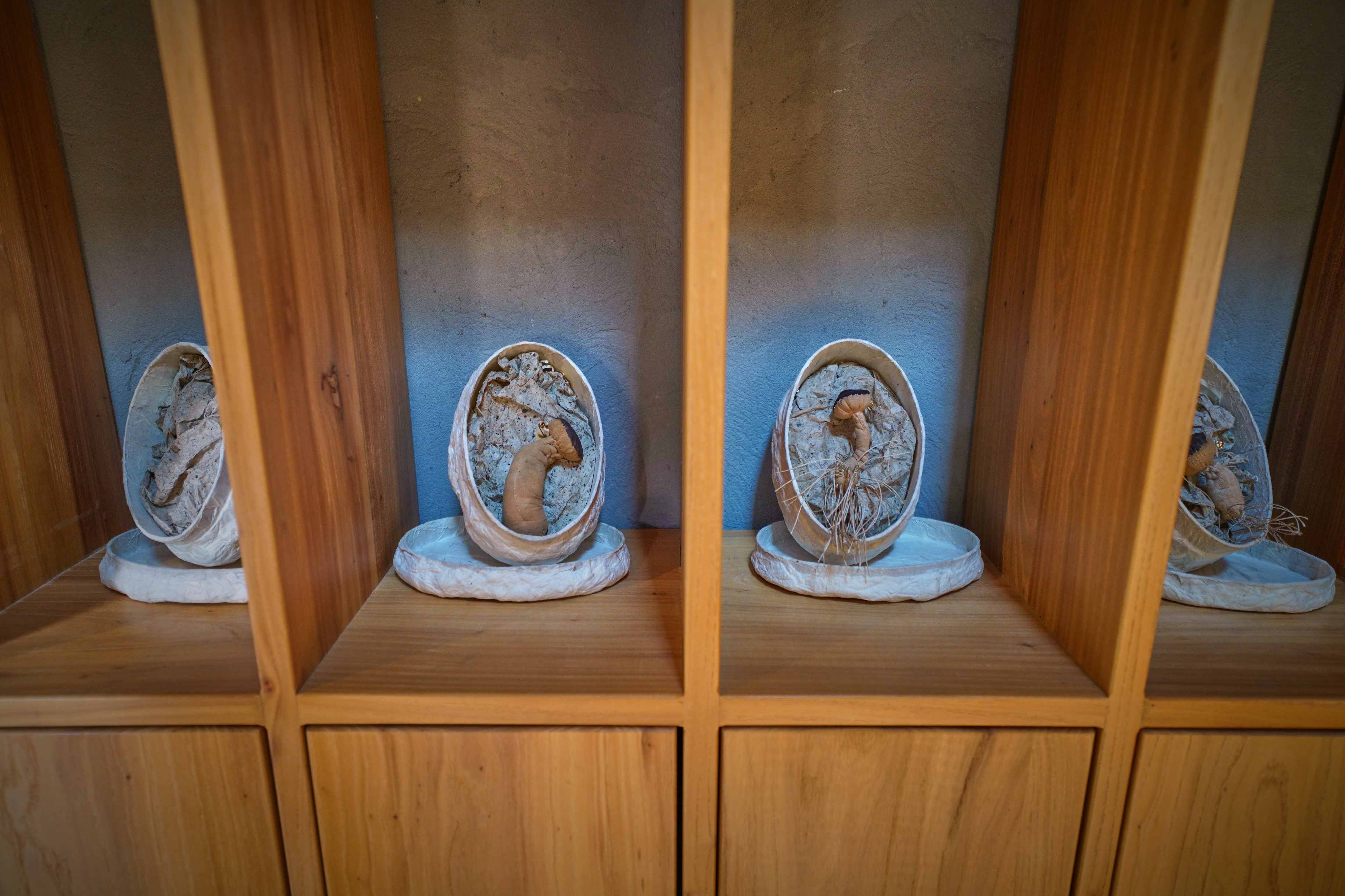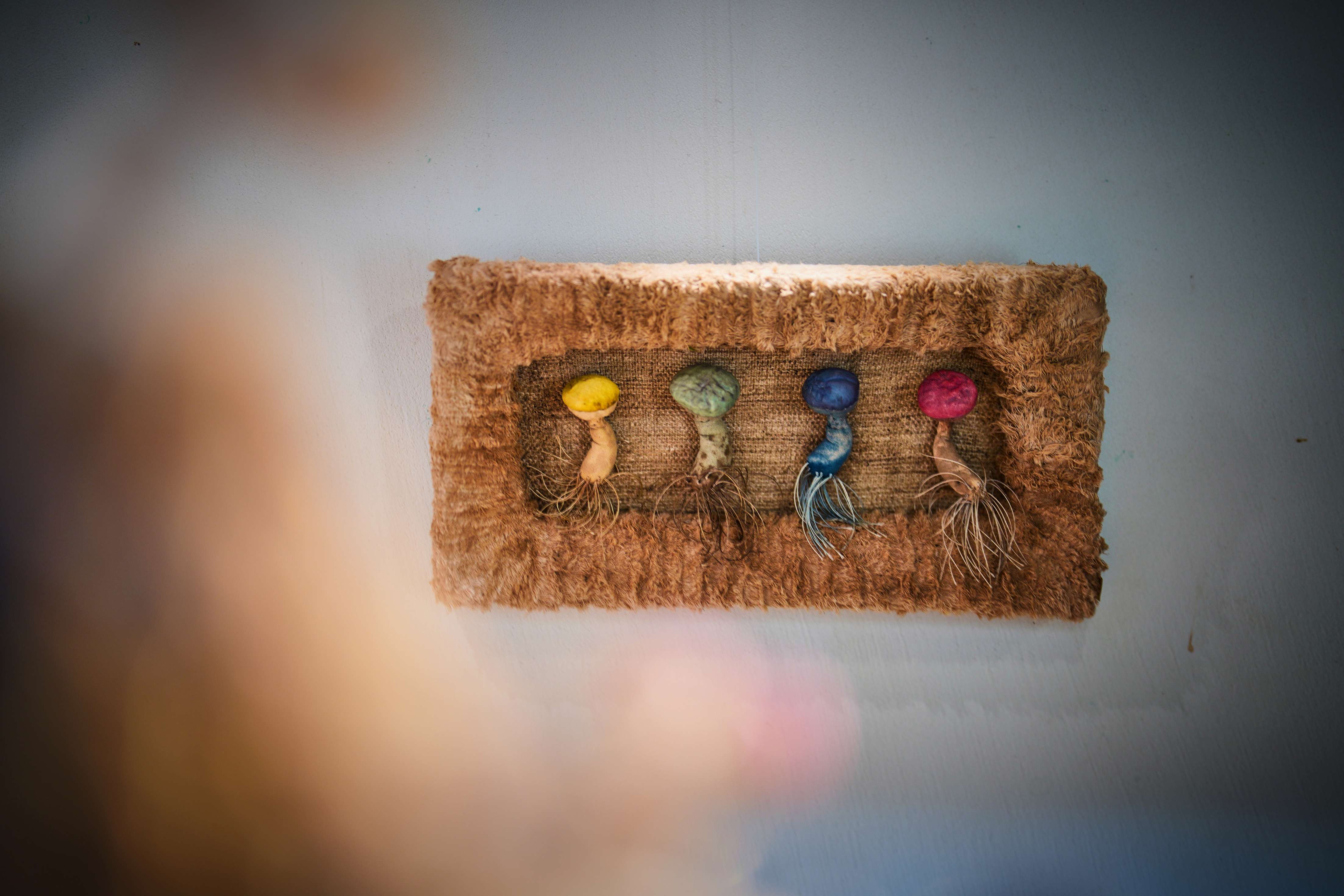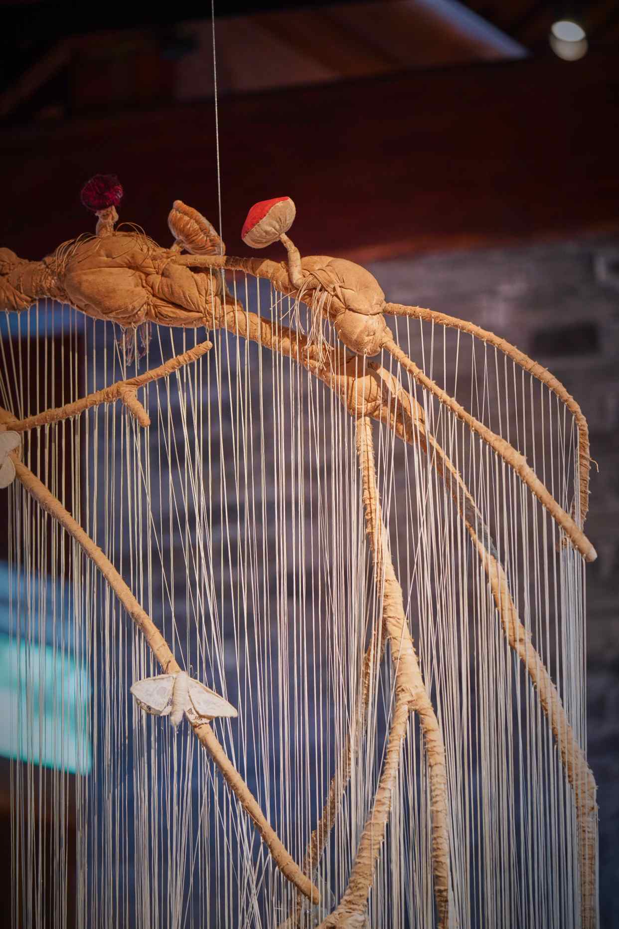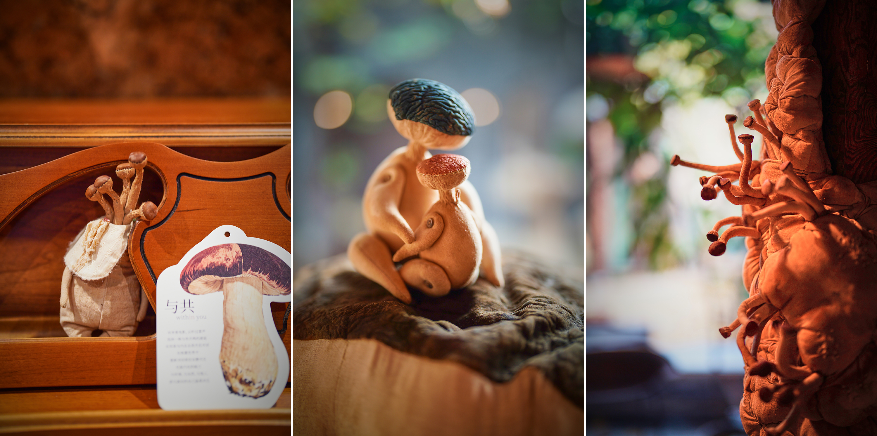 艺术家以棉布、丝绒、羊皮等天然材质,借精湛手工勾勒出菌菇与万物默契共生的画面,唤起观众重新思考人与自然、与社会之间的深层联结。