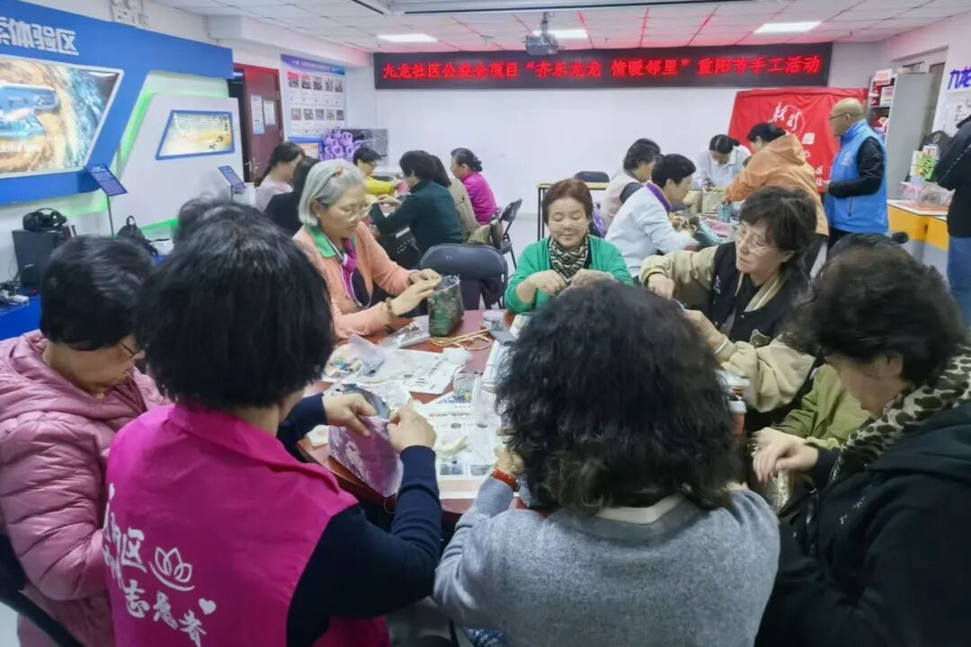 长辈们围坐在一起,有人纠结配色时,身旁邻居主动递过自己选的浅色配料:“搭你的红色,显亮!”许多老人一边做手工,一边分享着过往的重阳节故事,场面温馨而感人,细碎往事伴着笑声传开,满是温情。