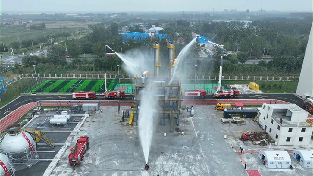 基地室外消防实训区域设置十大功能区,包括交通事故救援区,模拟小型车、大客车、危化品罐车等9处火点救援;地震救援区,设置正常与倒塌建筑,开展搜救及竖井救援训练;化工装置区,28米高主装置内含9处火点,可模拟爆炸、泄漏、流淌火等险情。此外,基地内10层消防训练楼涵盖体能训练、真火演练、密闭空间逃生等室内项目,全面构建“应急救援+综合实训一体化”服务平台。