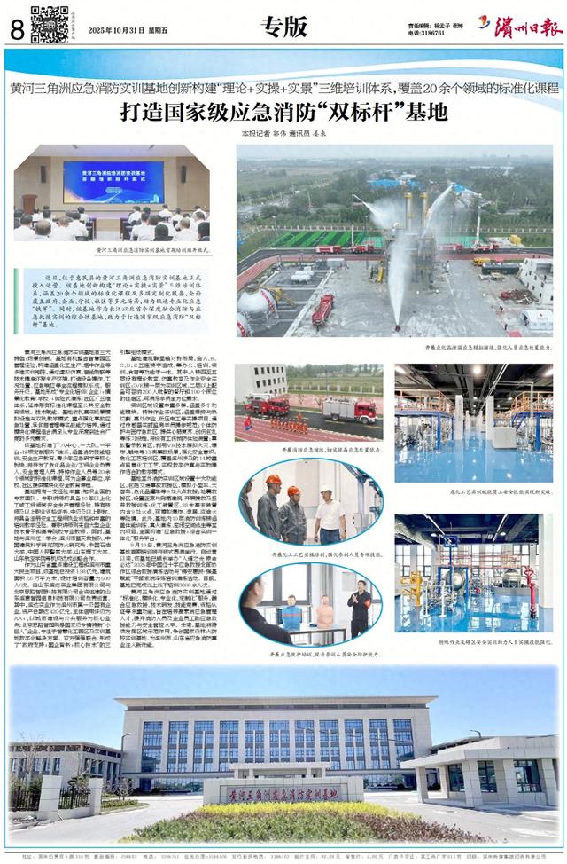 滨州日报/滨州网讯近日,位于惠民县的黄河三角洲应急消防实训基地正式投入运营。该基地创新构建“理论+实操+实景”三维培训体系,涵盖20余个领域的标准化课程及多项定制化服务,全面覆盖政府、企业、学校、社区等多元场景,助力锻造专业化应急“铁军”。同时,该基地作为长江以北首个深度融合消防与应急救援实训的综合性基地,致力于打造国家级应急消防“双标杆”基地。