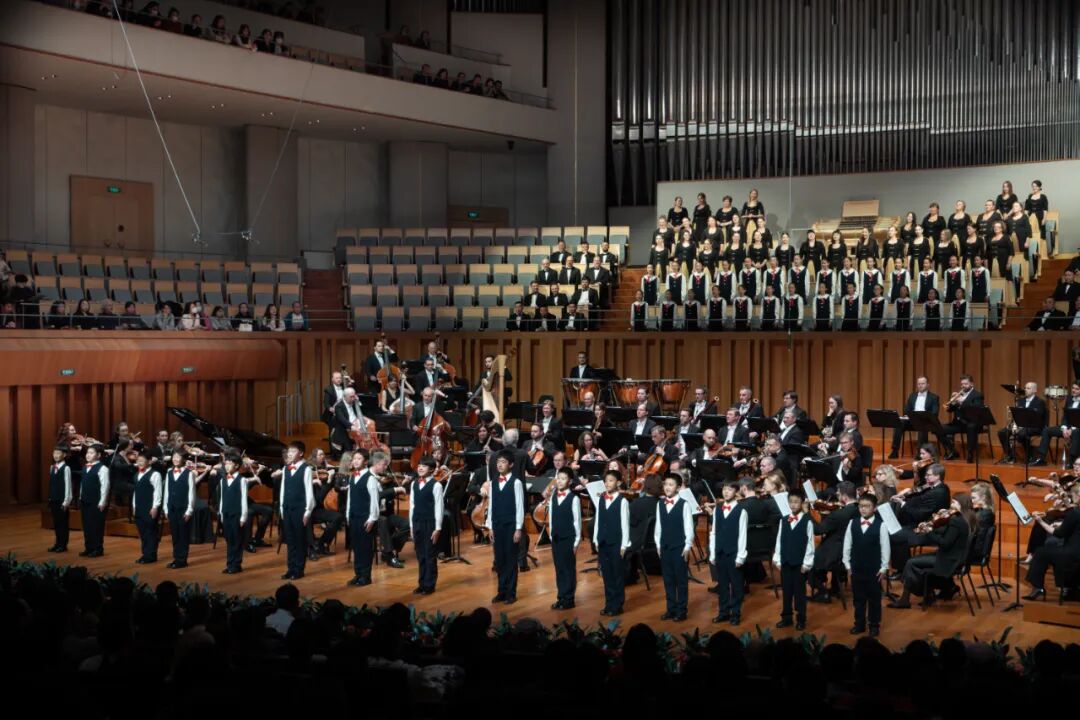 具体到当晚的演出,来自圣彼得堡的乐团在演绎柴科夫斯基的作品时很有历史底蕴。序曲的声部线条在捷杰耶夫的指挥下演绎得流畅动人,而北京爱乐合唱团的出场则迅速吸引了观众的视线。一群少年儿童踏着正步入场,收获众多掌声。