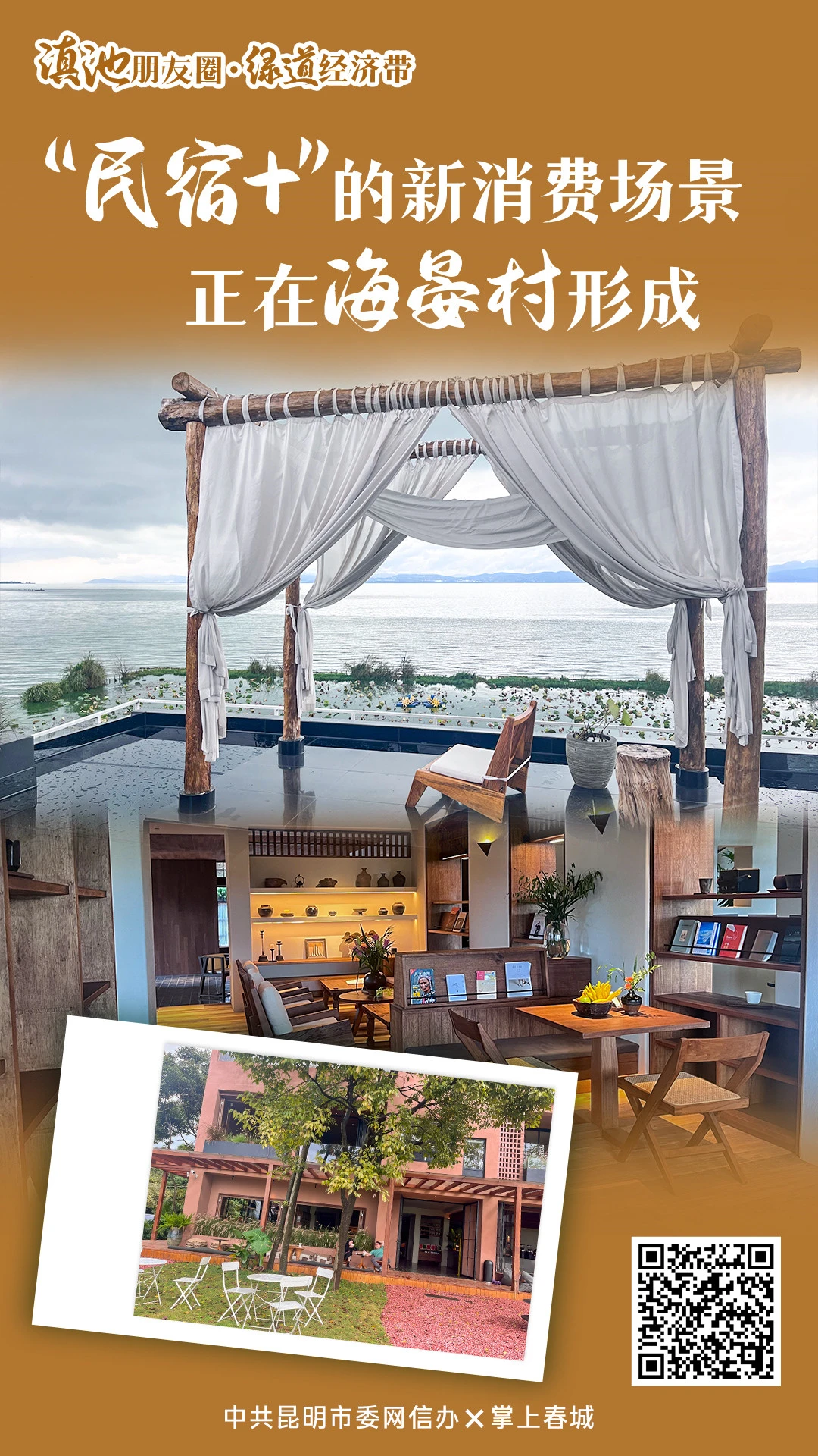 云滇朴语民宿负责人郑欣怡是海晏村最早一批的民宿创业者之一。站在院子里,她指着不远处的滇池回忆道:“一年前,我被这里的滇池风光和古村落风貌深深吸引,就想把这份美好分享给更多人。”她的民宿在保留传统民居建筑特色的同时,巧妙融入了现代设计元素。