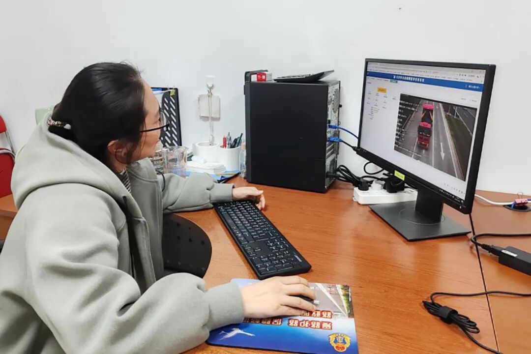 工作人员通过治超监管平台查看数据信息。