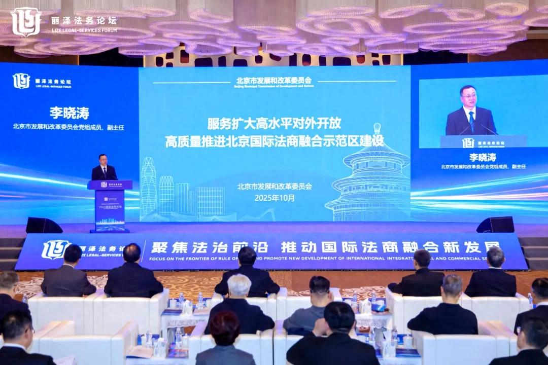 北京市发展改革委副主任李晓涛出席论坛并围绕“服务扩大高水平对外开放,高质量推进北京国际法商融合示范区建设”发表主旨演讲,系统阐述了北京国际法商融合示范区建设的战略意义、实践路径与发展蓝图。