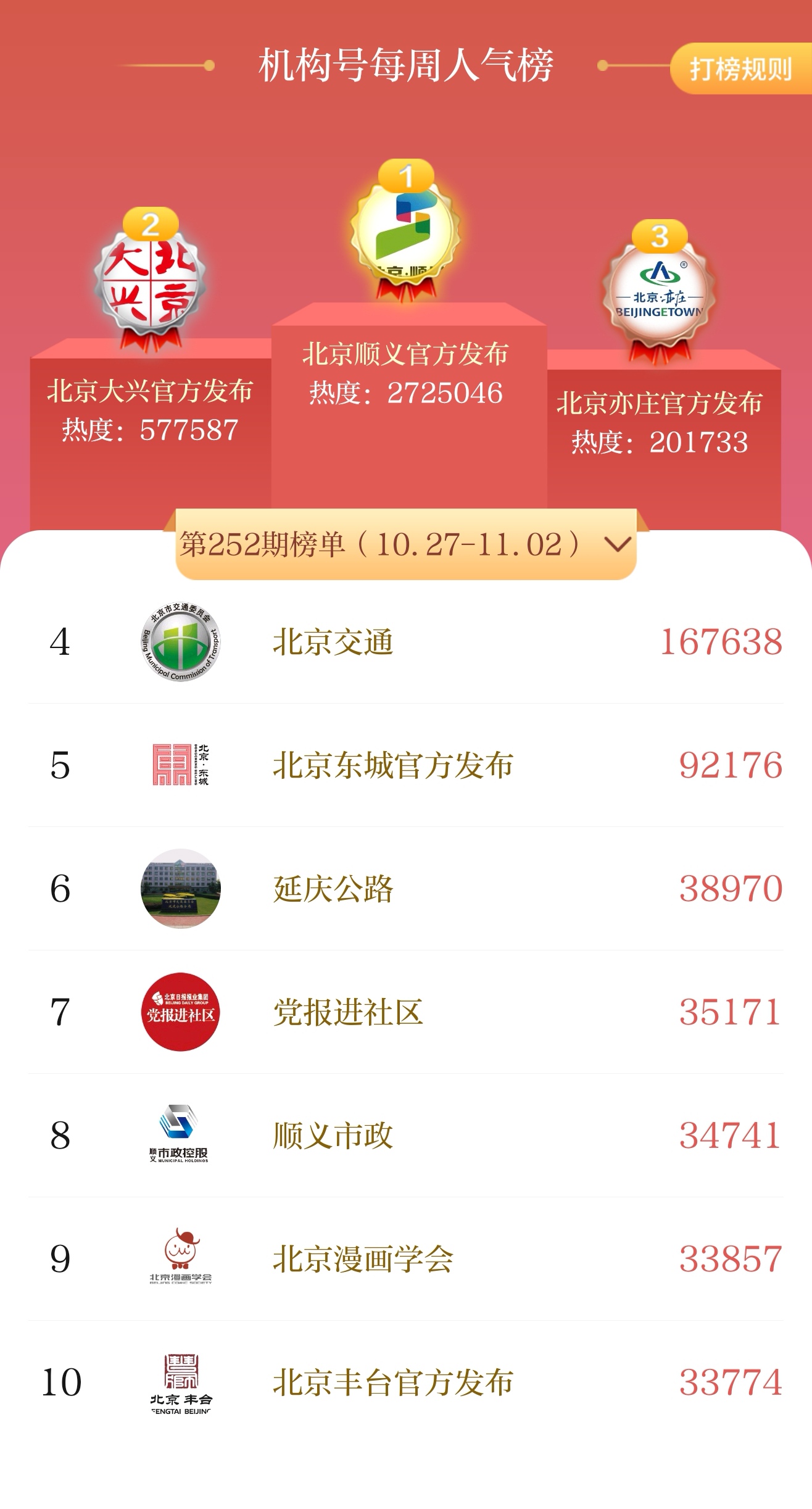10月27日至11月2日 | 北京号一周人气榜